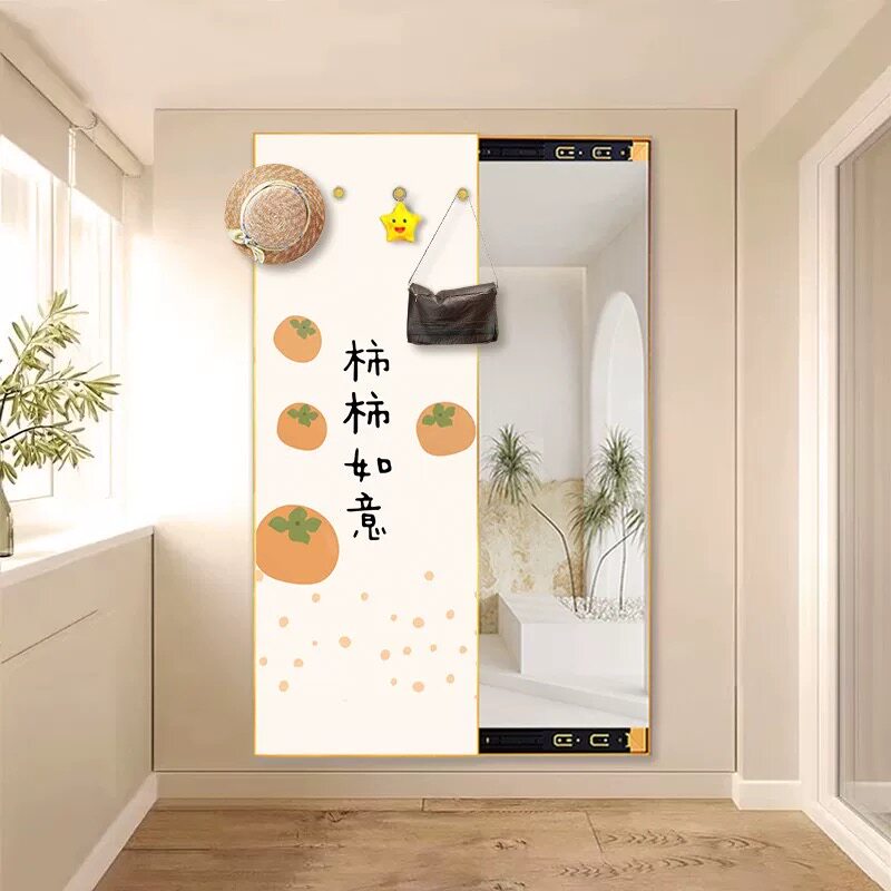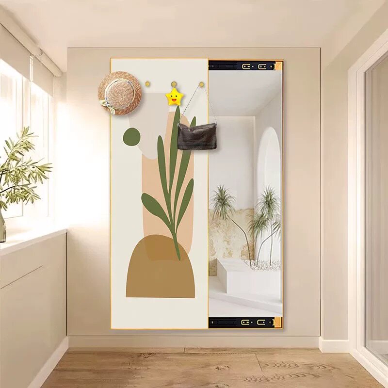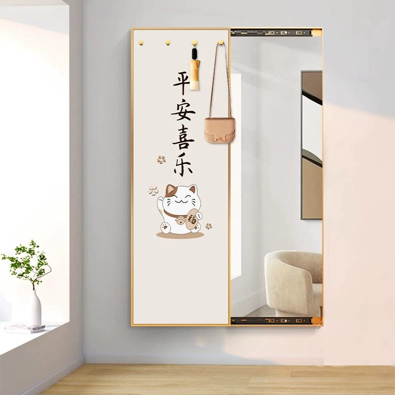 新款极简风格隐藏式全身镜可推拉试衣镜玄关镜子装饰画带挂钩挂画