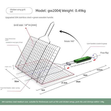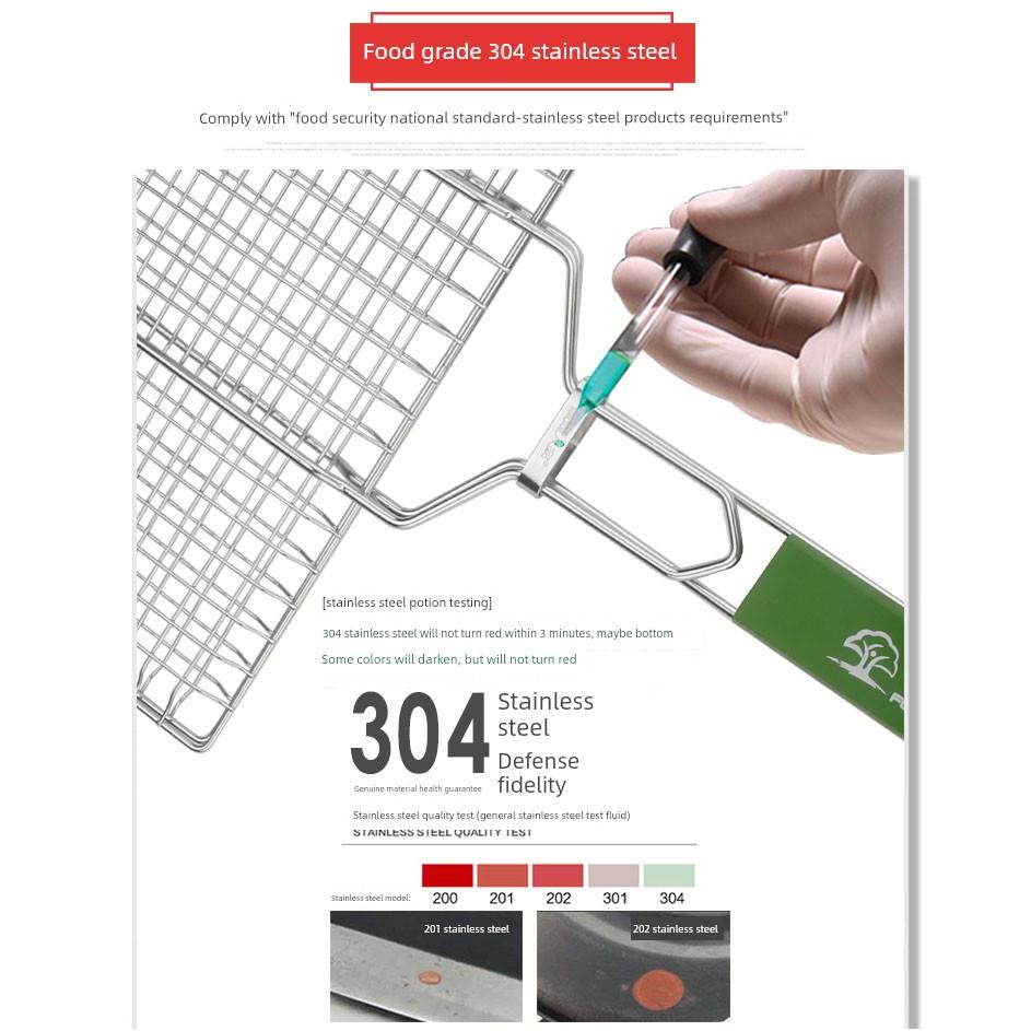 森林烧烤用具烤鱼夹不锈钢304烧烤夹板网烤鱼网专用夹网