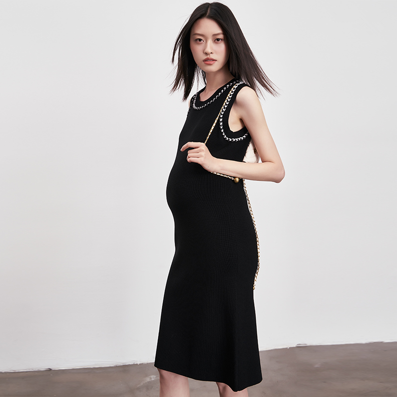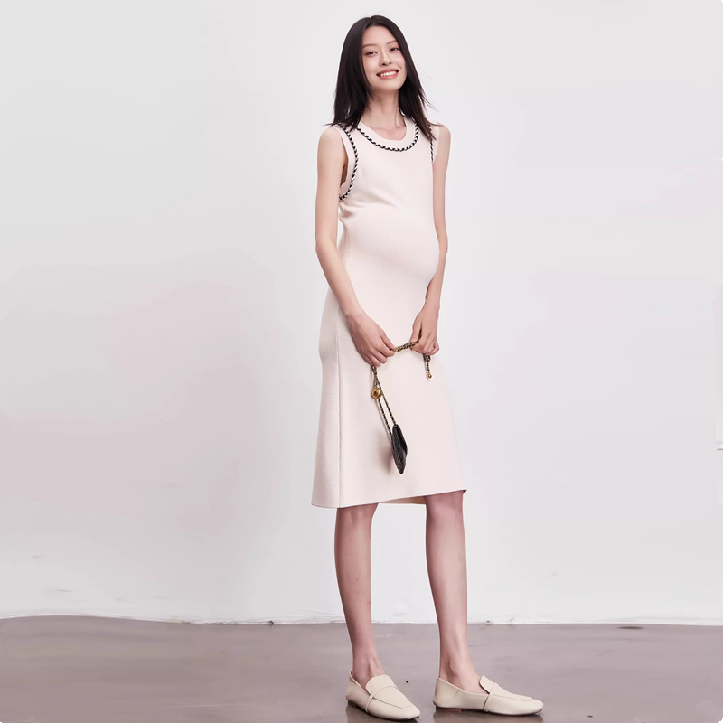 小香风孕妇裙夏季薄款冰丝连衣裙经典撞色潮妈孕期修身弹性针织裙