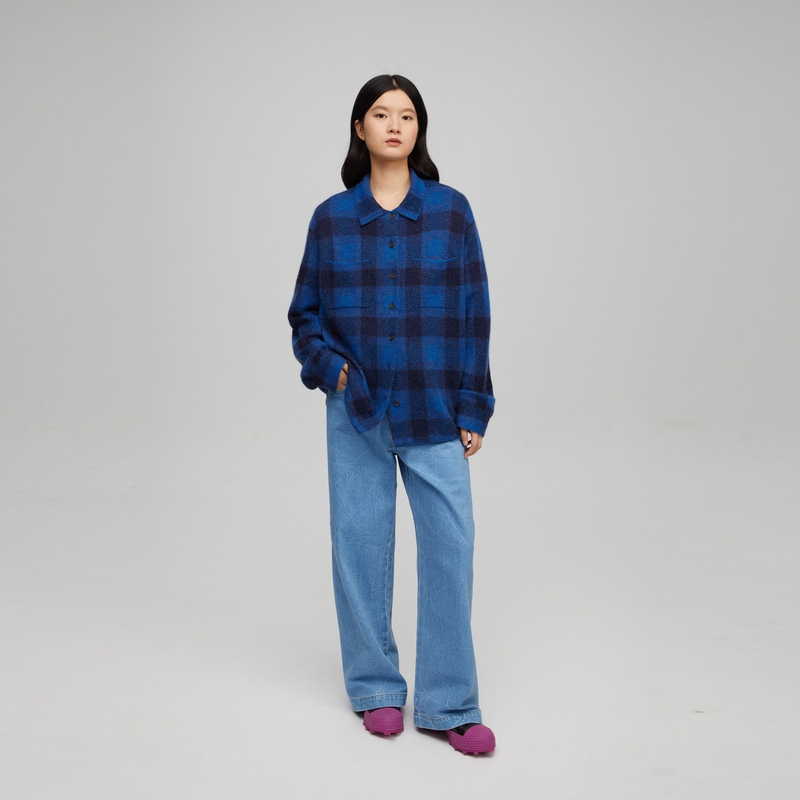 【预售】ZUCZUG 素然冬季女士马海毛经典气质休闲宽松格子衬衫