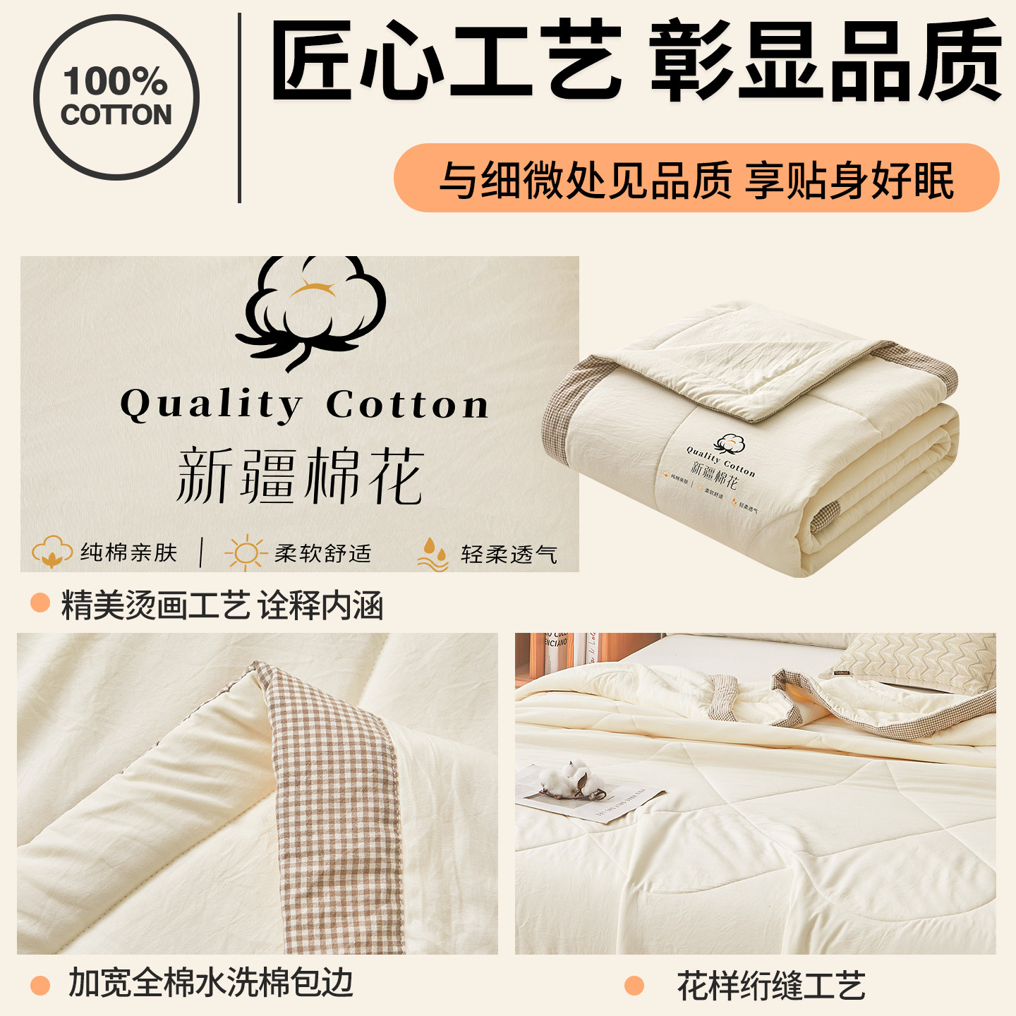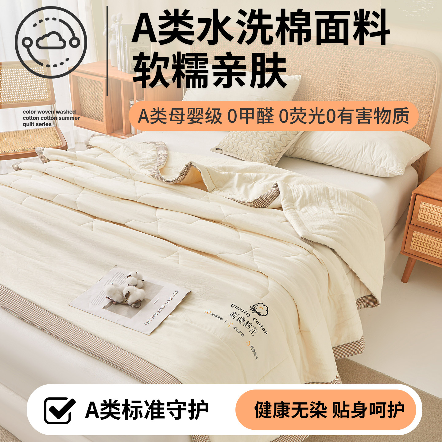 A类新疆棉花夏凉被空调被纯棉全棉夏被芯可机洗单双人夏季薄被子1
