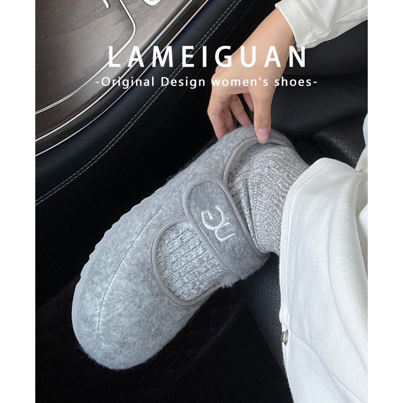胡桃木色魔术贴加绒豆豆棉鞋女外穿2025秋冬新款毛毛玛丽珍棉单鞋
