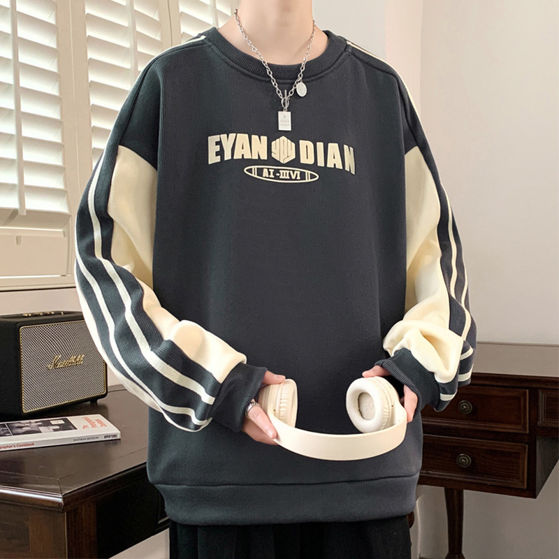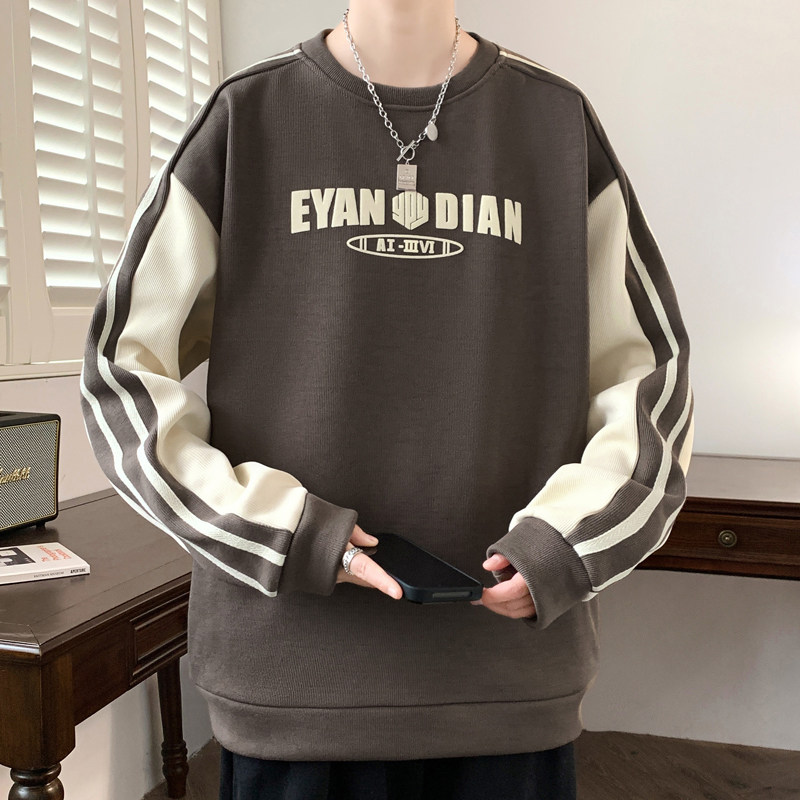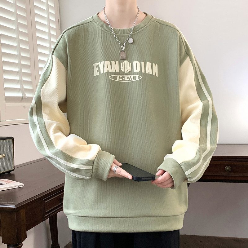 大码卫衣男士春秋新款圆领潮牌休闲宽松加肥加大胖子条纹长袖外套
