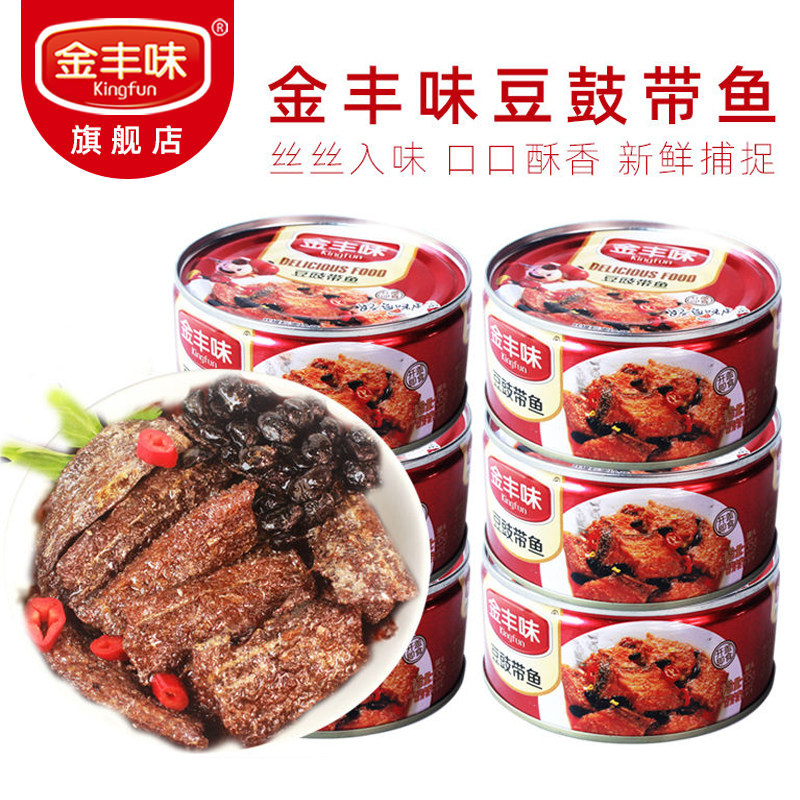 金丰味 豆香黄鱼罐头即食香辣味香酥小黄鱼豆豉带鱼140克