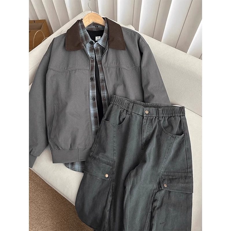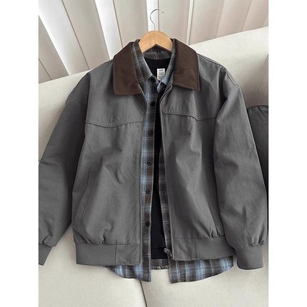美式cleanfit复古底特律工装外套男款秋季翻领棒球服短款纯棉夹克