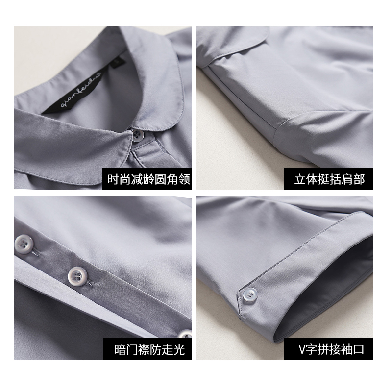 灰色衬衣女短袖夏季时尚减龄显瘦衬衫女圆领职业装正装上衣空姐范