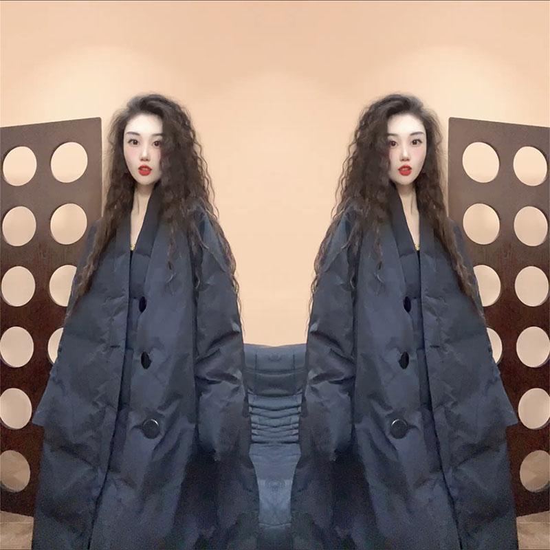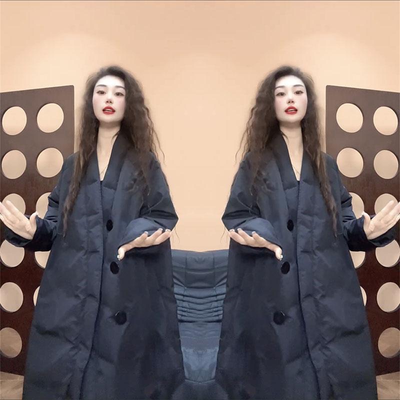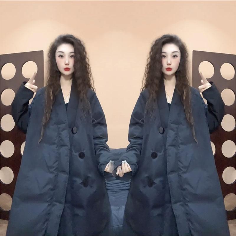 秋冬文艺宽松中长款V领羽绒棉棉服棉衣复古保暖百搭中式外套女装