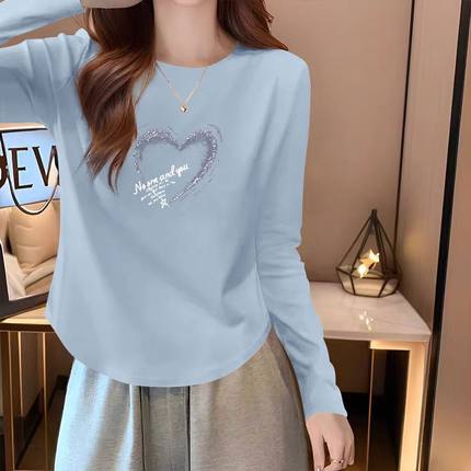 圆领纯棉t恤长袖打底衫女春秋款