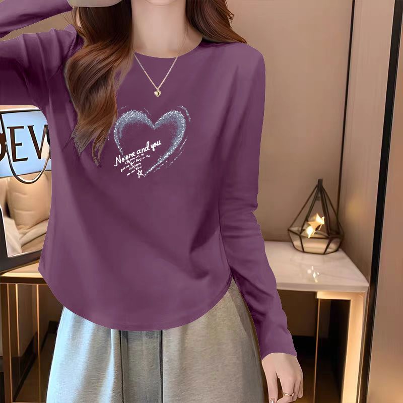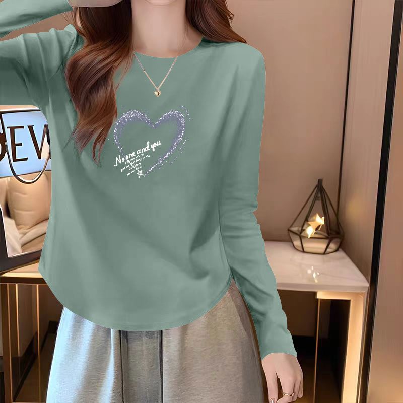 圆领纯棉t恤长袖打底衫女春秋款韩版宽松休闲洋气百搭ins气质上衣