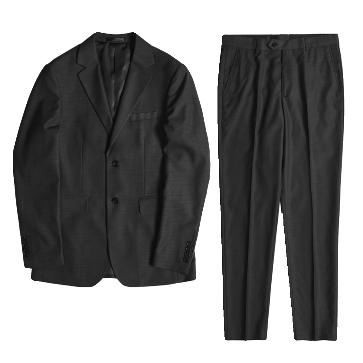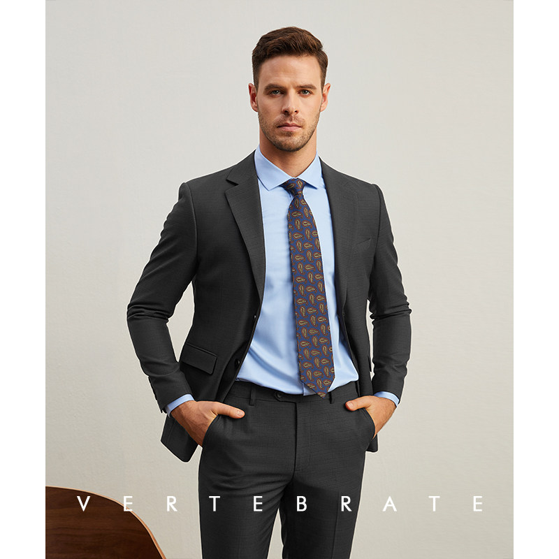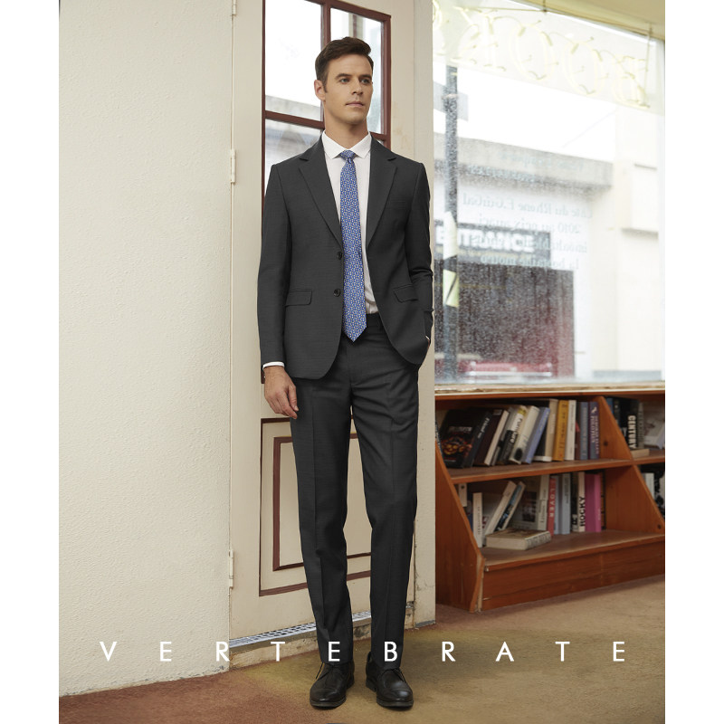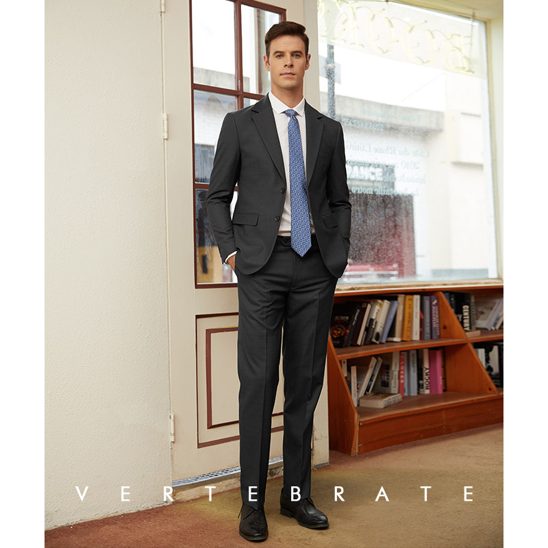 脊椎动物男装深灰碳黑色肌理感面料西装西裤两件套装商务职业正装