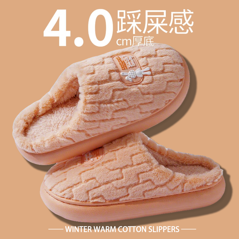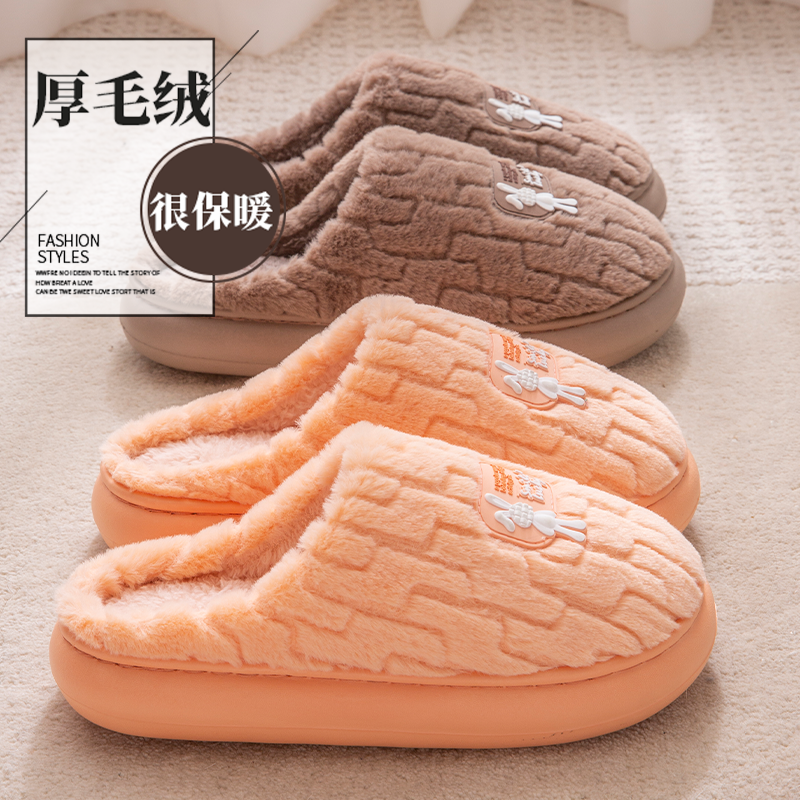 棉拖鞋女士秋冬季室内家居家防滑厚底踩屎感毛毛绒保暖情侣拖鞋男