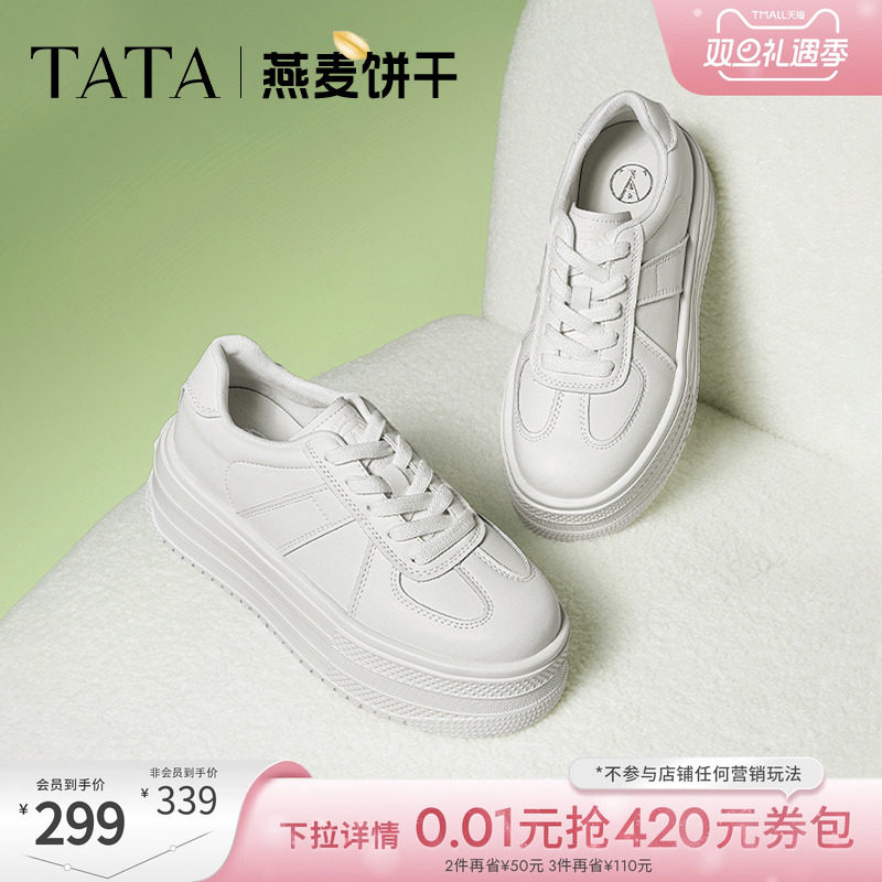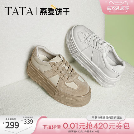 TATA他她燕麦饼干厚底小白鞋女鞋增高松糕休闲板鞋子春季CCW02AM5