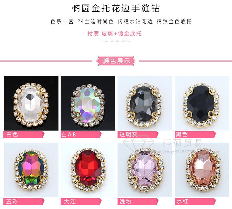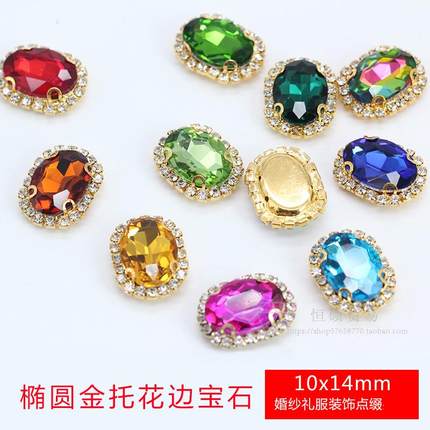 水晶玻璃手缝钻爪钻包边手缝石10x14mm椭圆 超闪爪钻DIY婚纱水钻