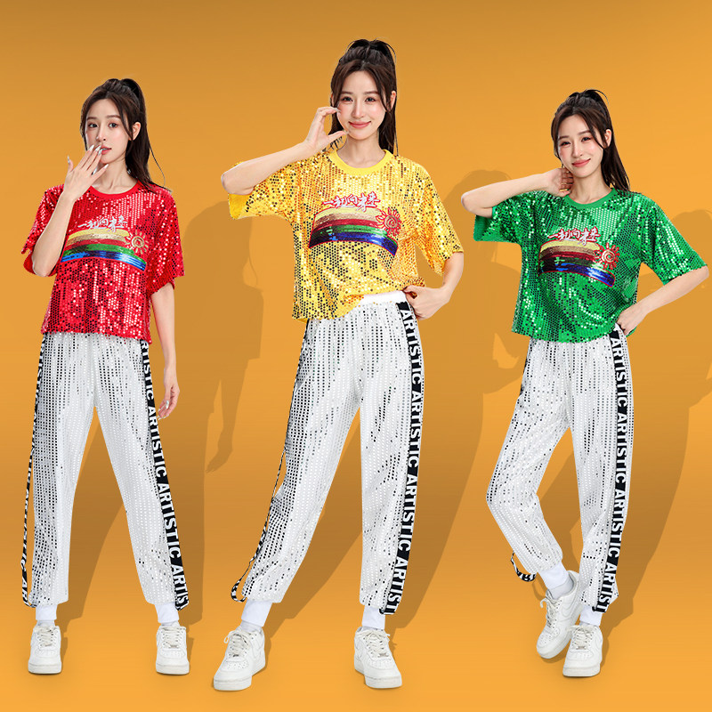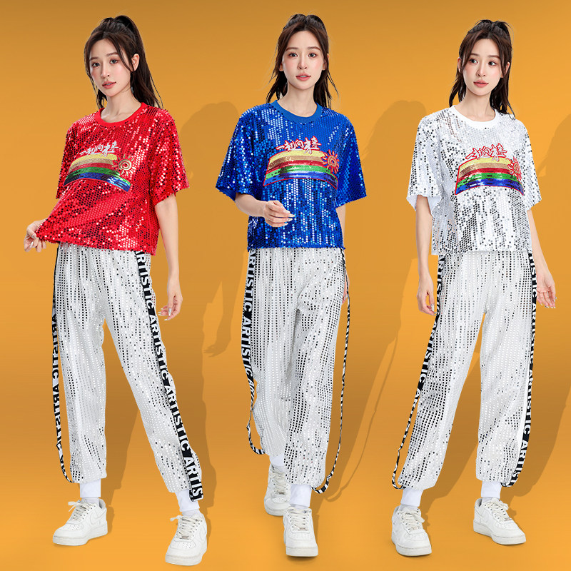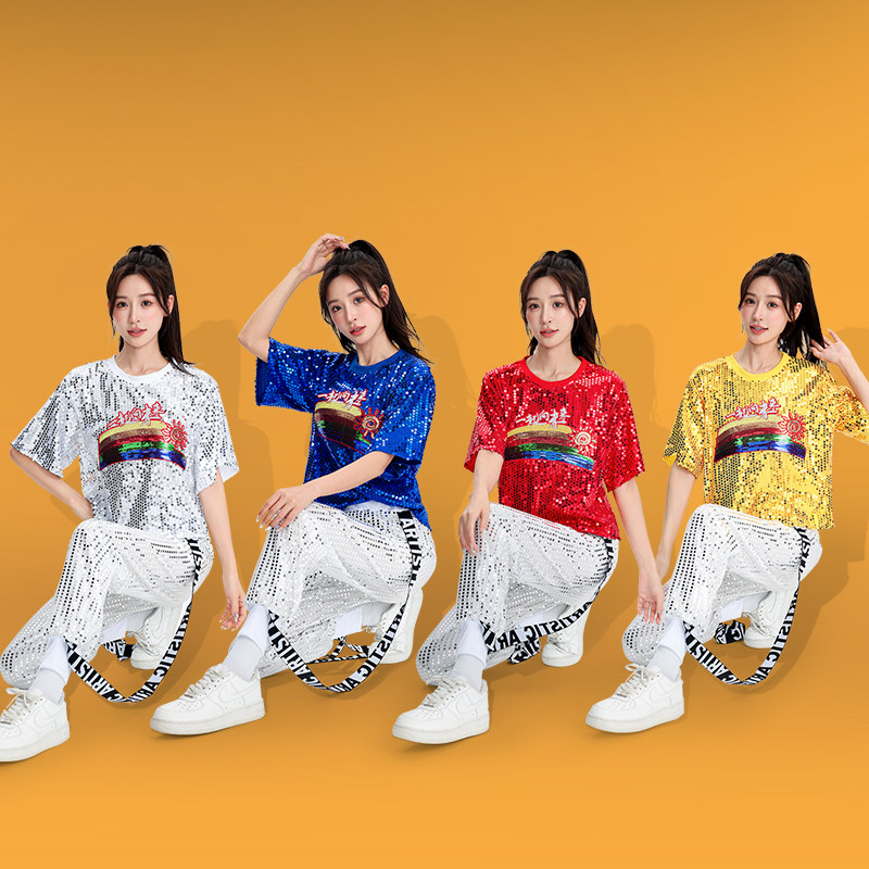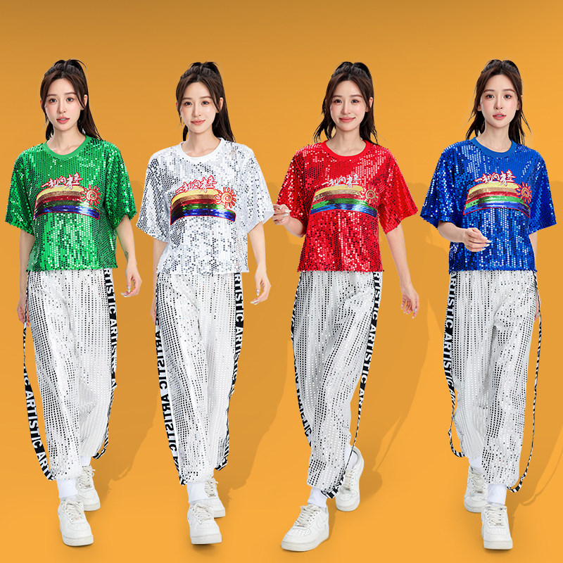 新款广场舞服装男女成人套装爵士舞舞蹈服啦啦队现代舞亮片演出服