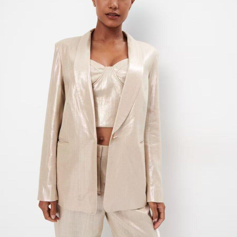 AA0980外贸欧美单通勤风女士西装春季新款翻领一粒扣修身气质外套