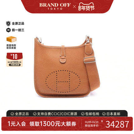 中古Hermes爱马仕女包A级95新Evelyn 3PM伊芙琳牛皮斜挎包棕色