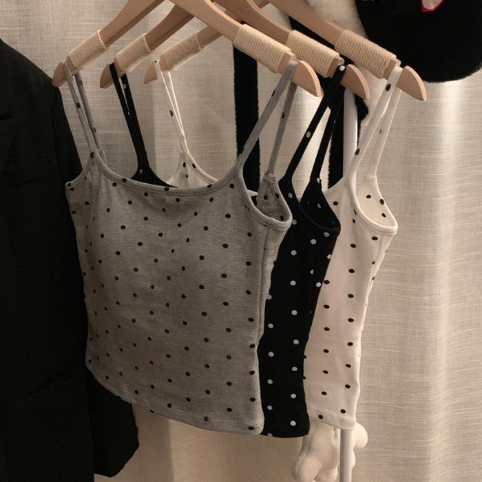 辣妹波点吊带背心女修身内搭带胸垫美背裹胸大u露背外穿打底上衣