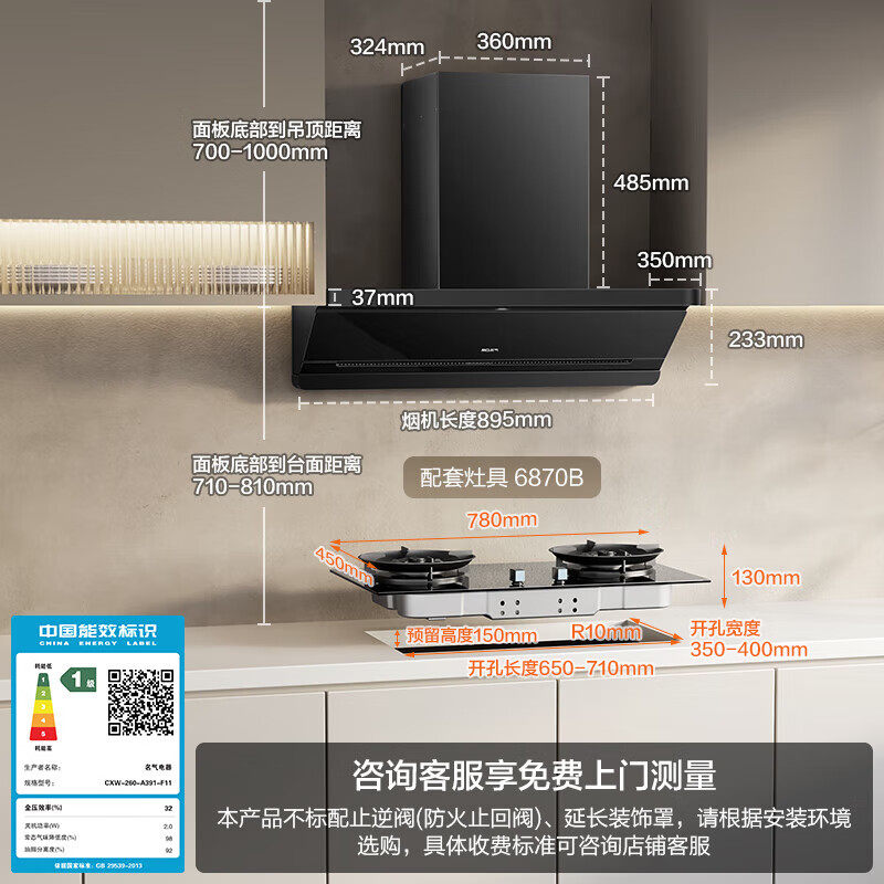 名气变频抽油烟机厨房家用29大吸力星河F11燃气灶套装F10老板出品