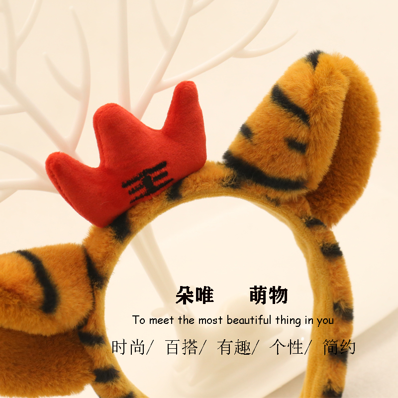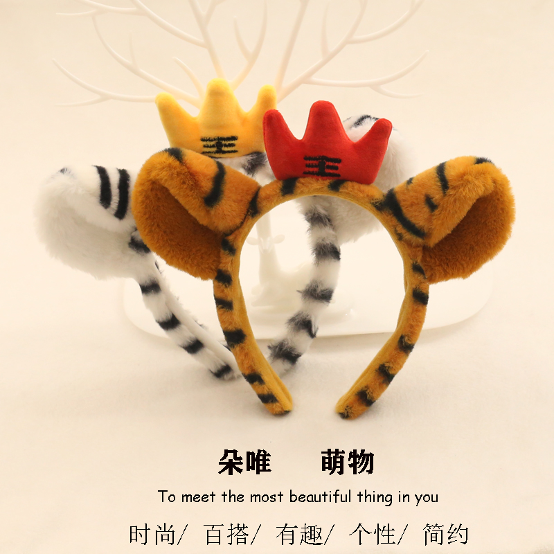 可爱老虎发箍超萌卡通动物造型表演拍照老虎耳朵皇冠发卡虎年头箍