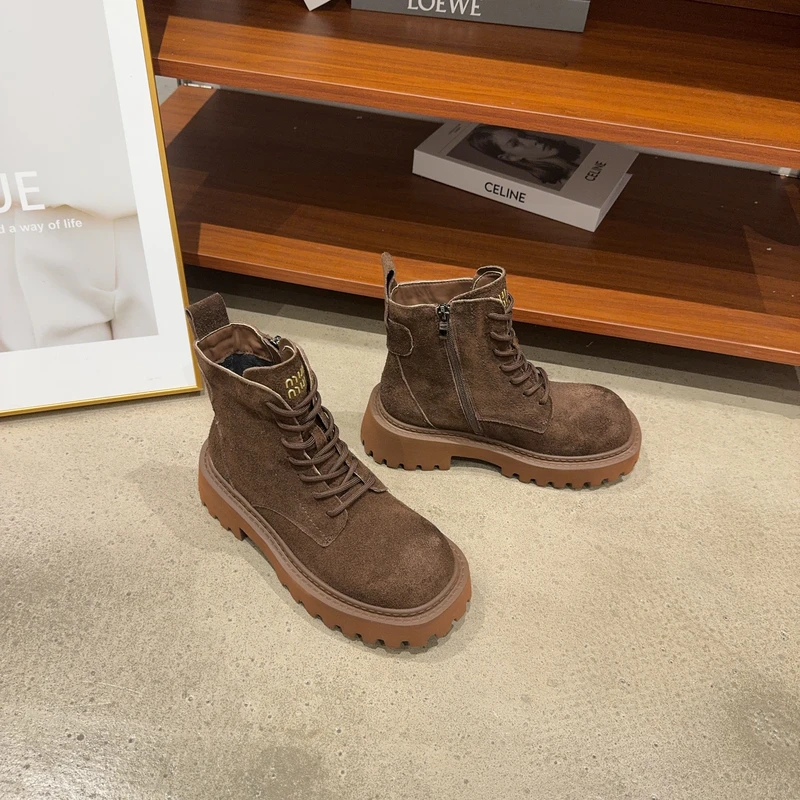 317-19厚底英伦风短筒马丁靴女2025新款女鞋真皮靴子女秋季短靴