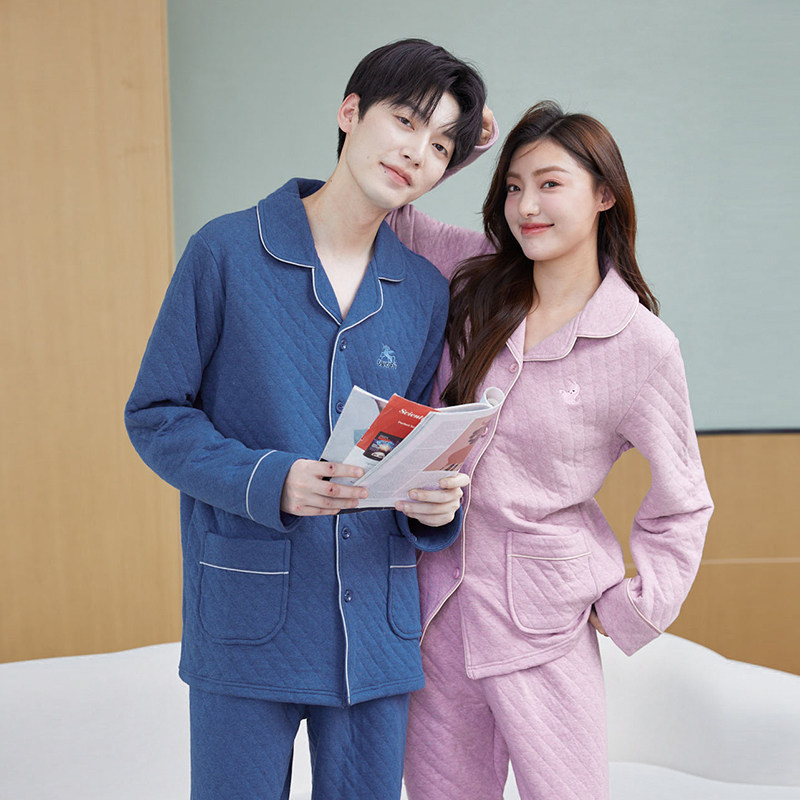 美标情侣空气夹层夹棉睡衣套装
