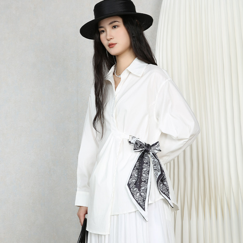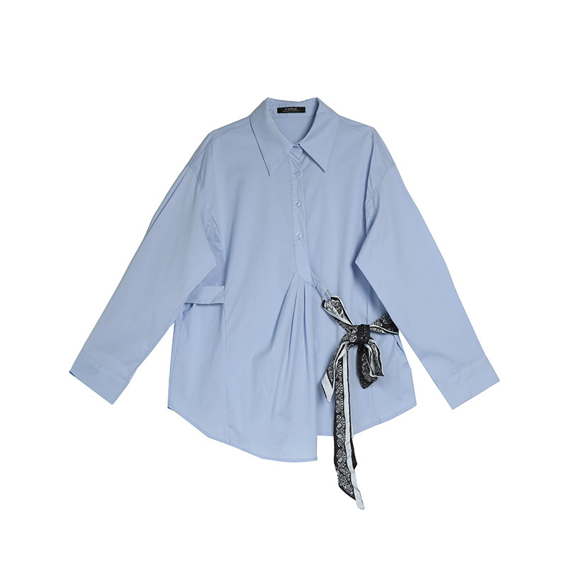 梵凯衬衣女2026春设计感丝带收腰衬衫宽松长袖气质绑带春秋衬衣女