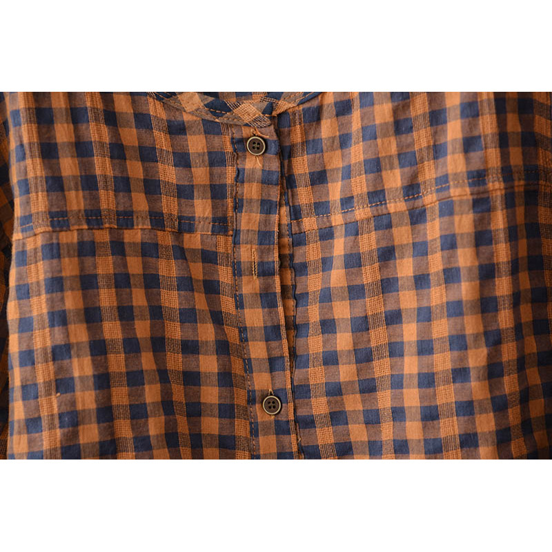 格子圆领系扣衬衫女短袖夏款宽松