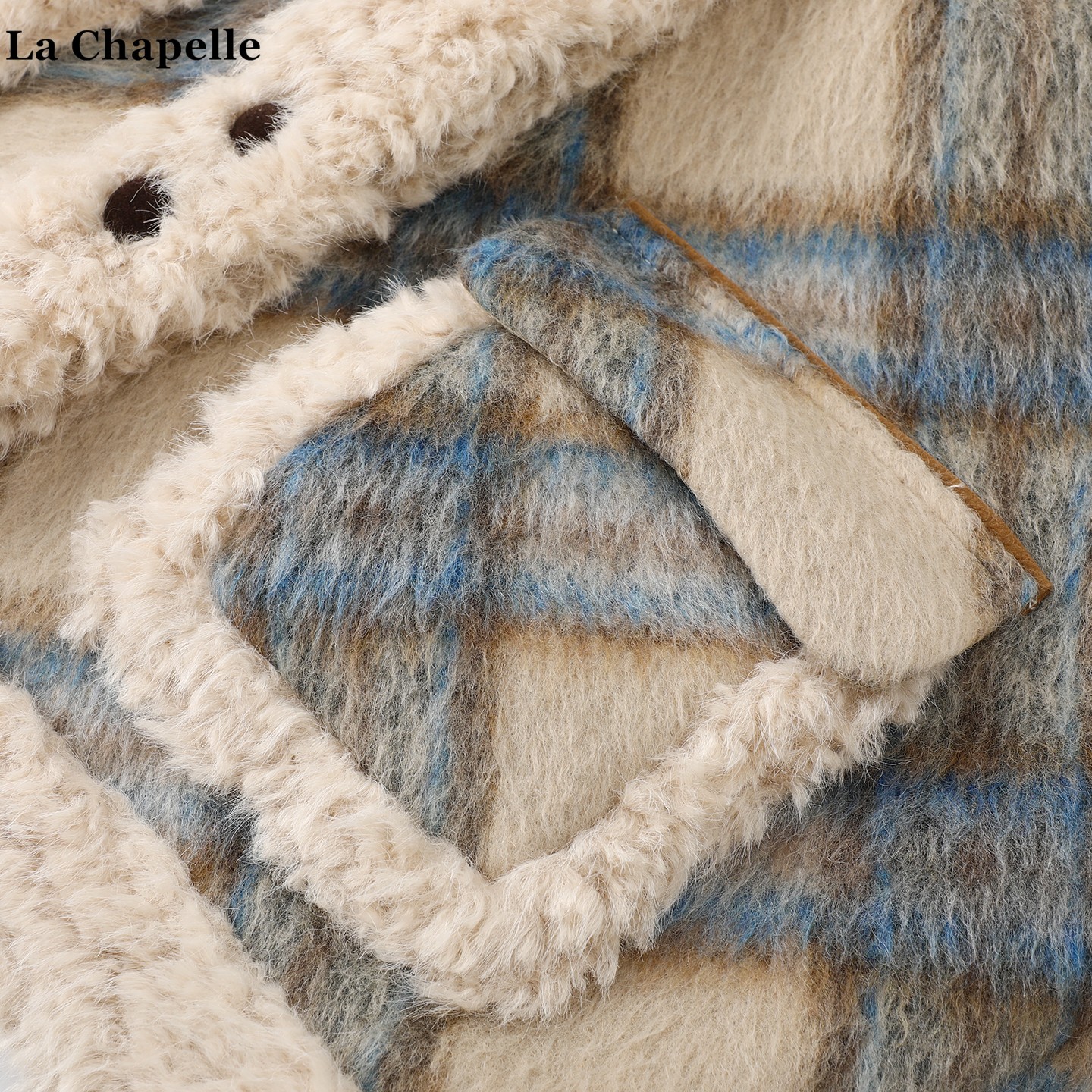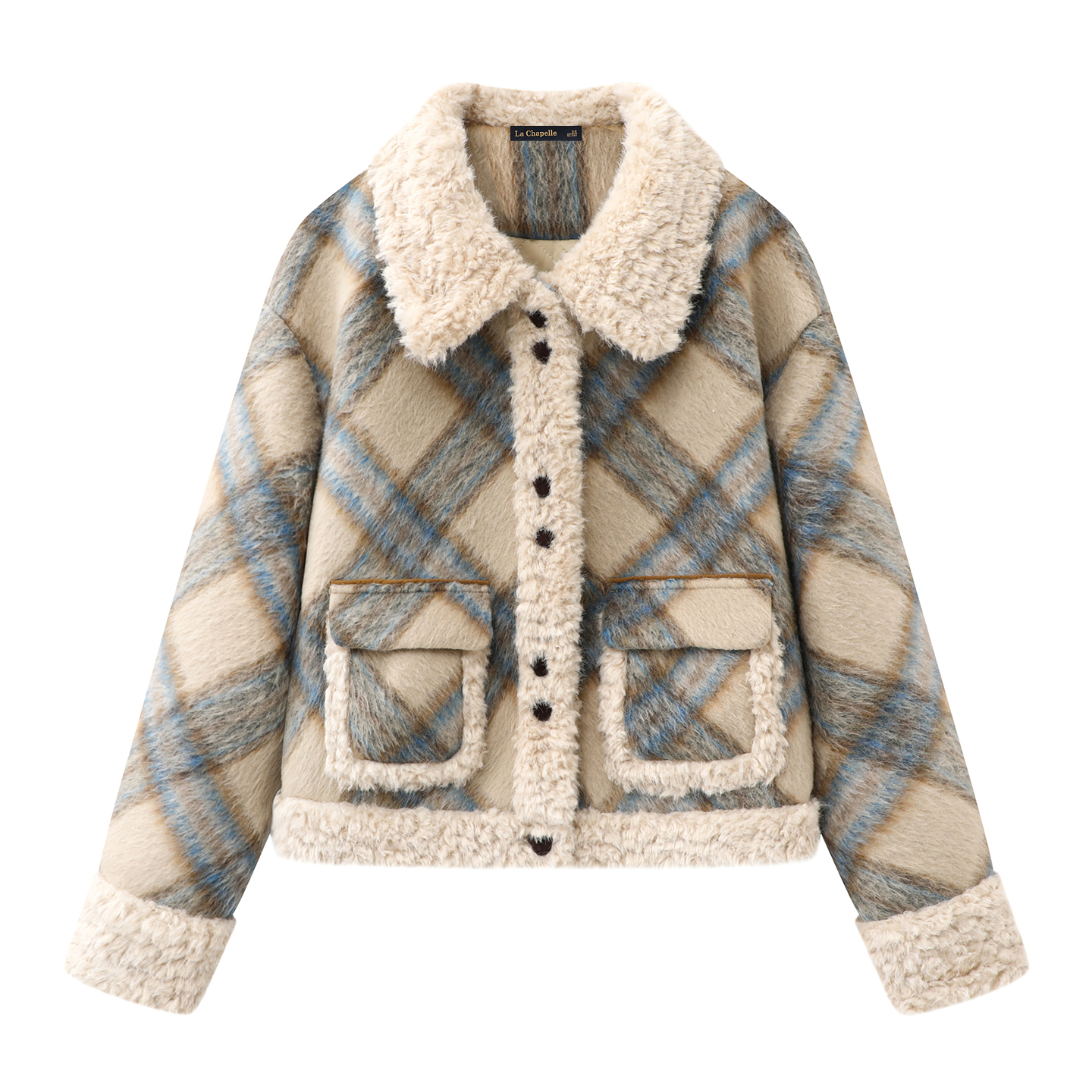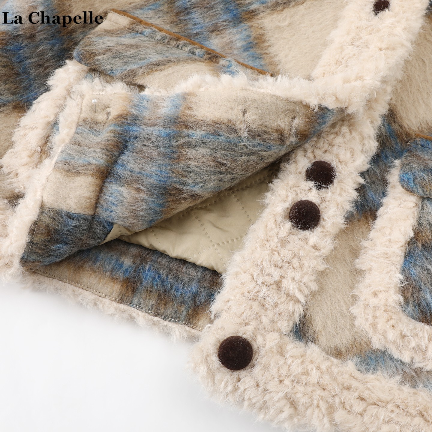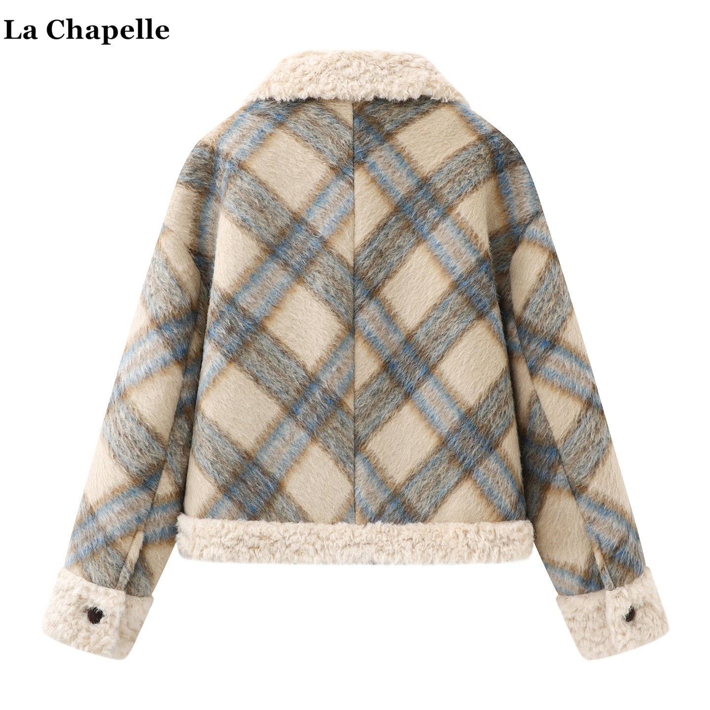拉夏贝尔/La Chapelle复古翻领羊羔毛拼接外套女秋冬新款加厚上衣