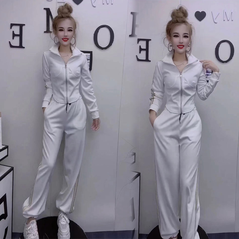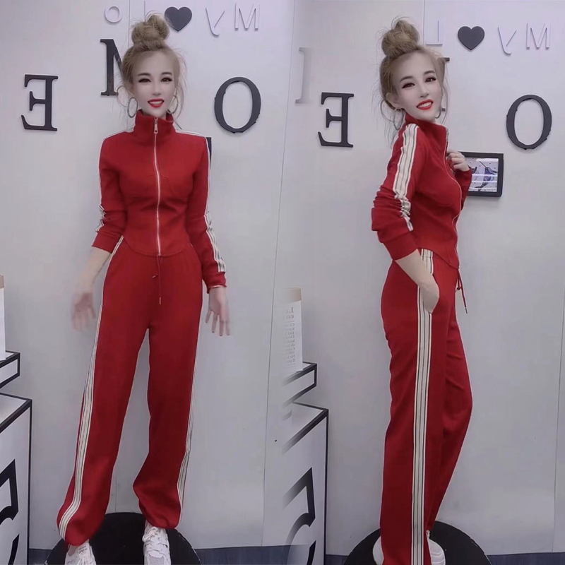 休闲运动服套装女2025春秋季新款韩版显瘦立领短外套阔腿裤两件套