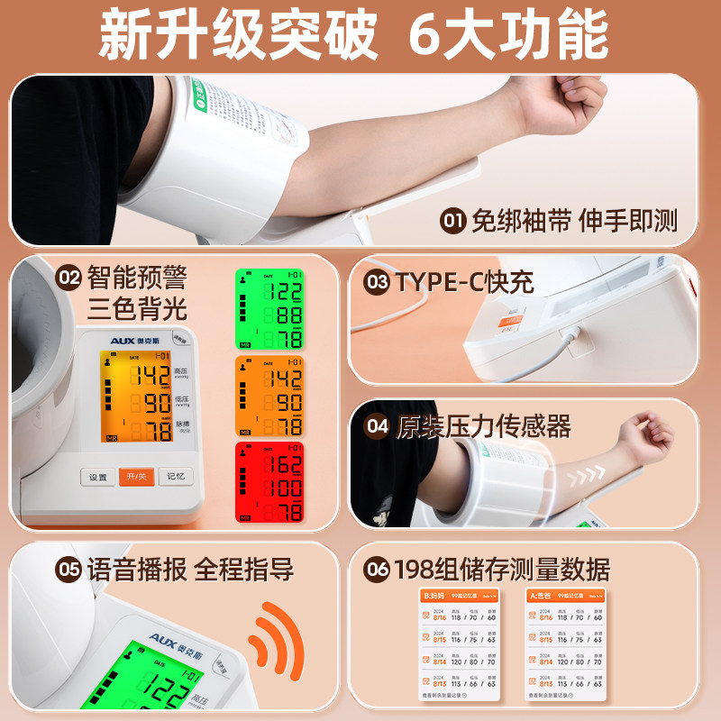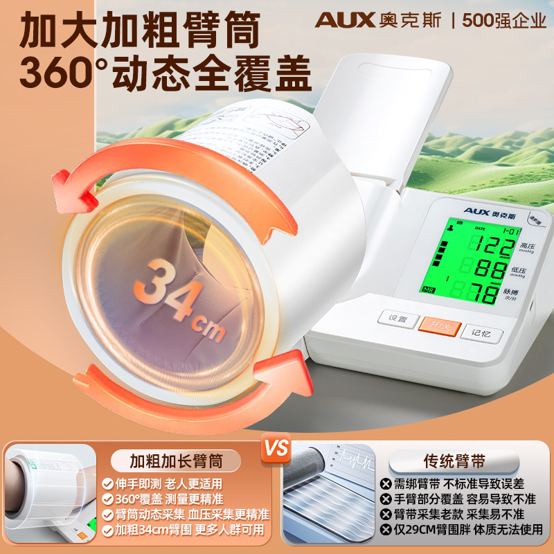 奥克斯臂筒式医用血压计电子血压测量仪高精准家用测压仪仪器老人