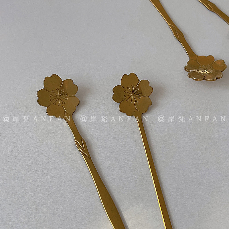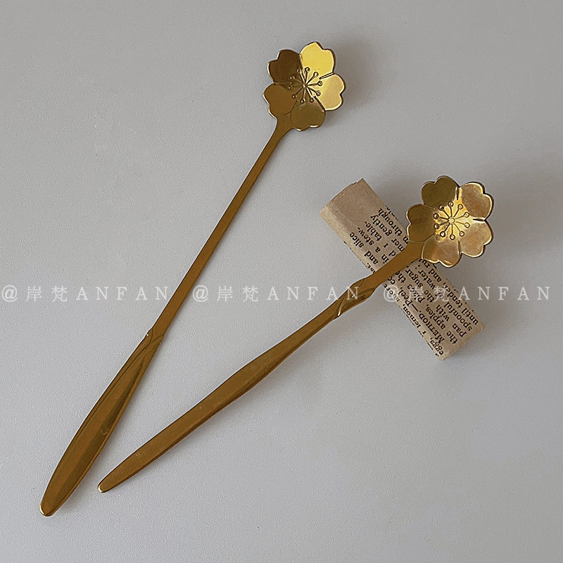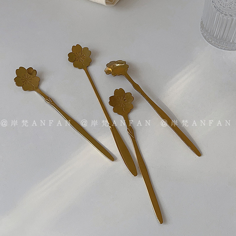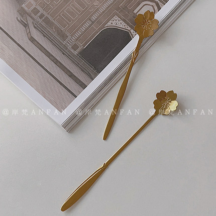 网红花瓣咖啡勺樱花勺长柄不锈钢勺子饮品搅拌勺甜品勺蛋糕勺