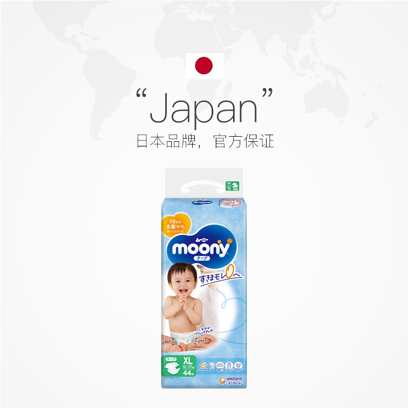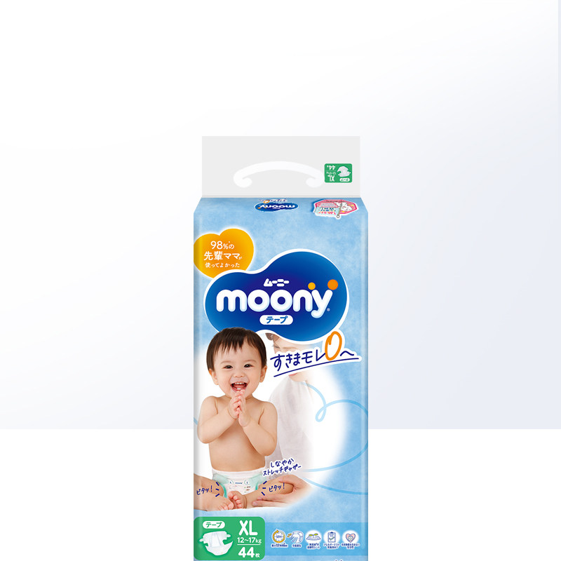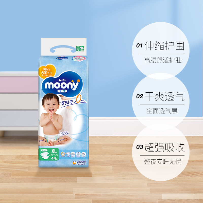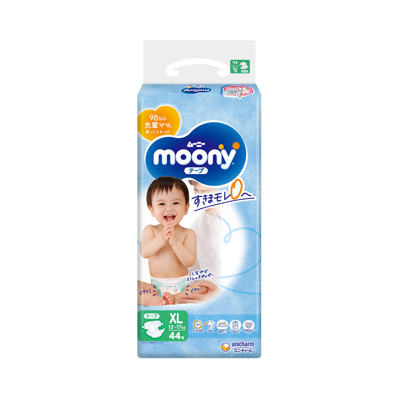 【自营】尤妮佳/Moony腰贴型纸尿裤XL44片(12-17kg)透气