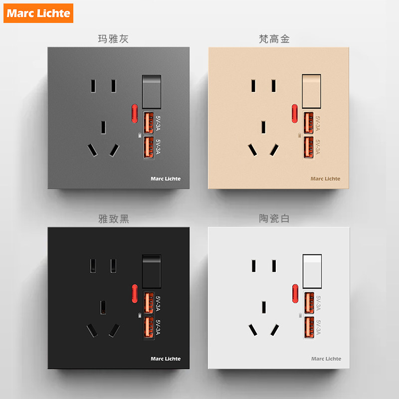 86型一开五孔双USB充电插座通用家用二位USB安卓手机充电插座面板