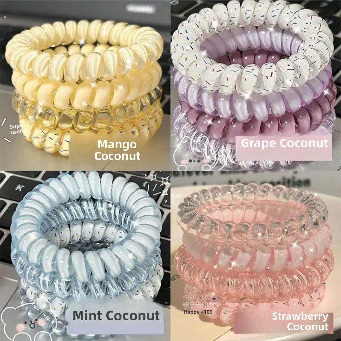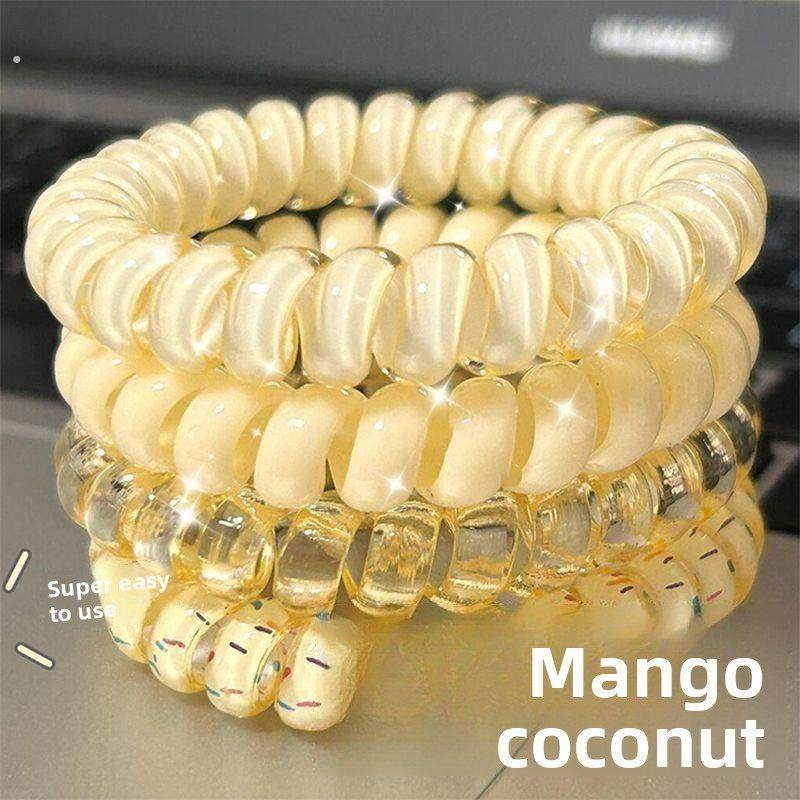 高品质电话线发圈高弹力波点发绳夏天头绳女发饰耐用无痕塑料薄荷