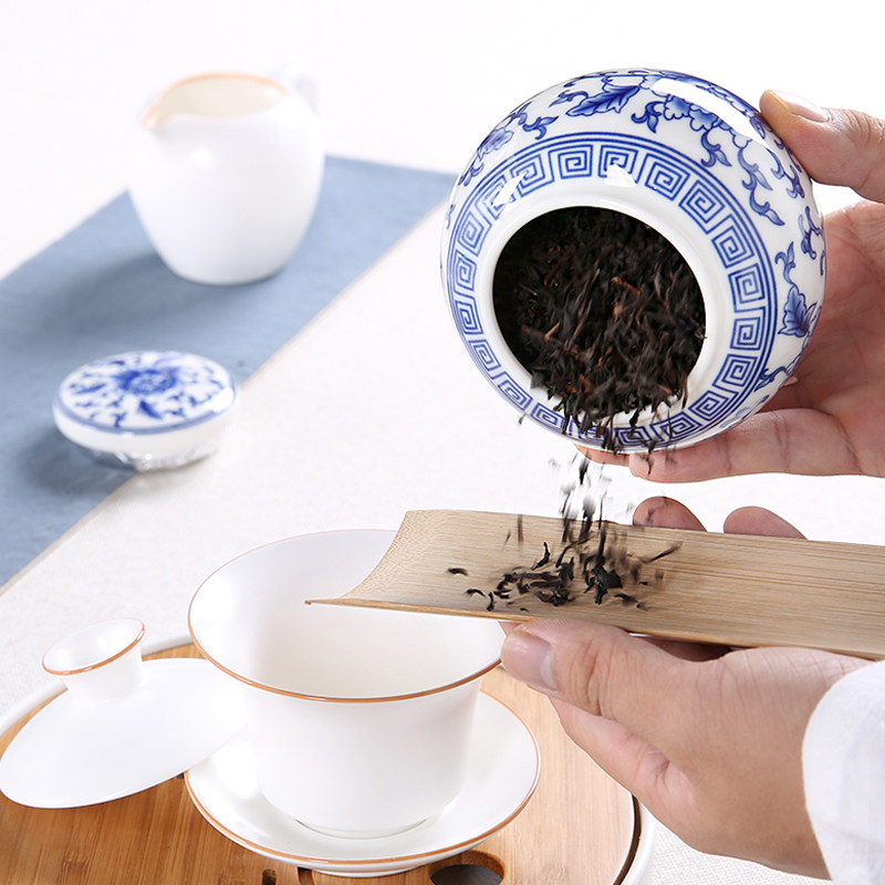 万瓷朝宗青花瓷茶叶罐通用陶瓷膏方罐密封罐普洱罐花茶罐茶具配件
