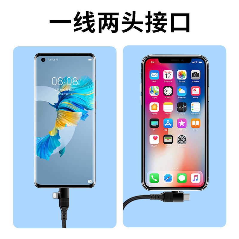 胖头雕0.25m一拖二数据线适用华为苹果16二合一超级快充typec充电线USB车载14/15双头转接编织短款安卓0.5米