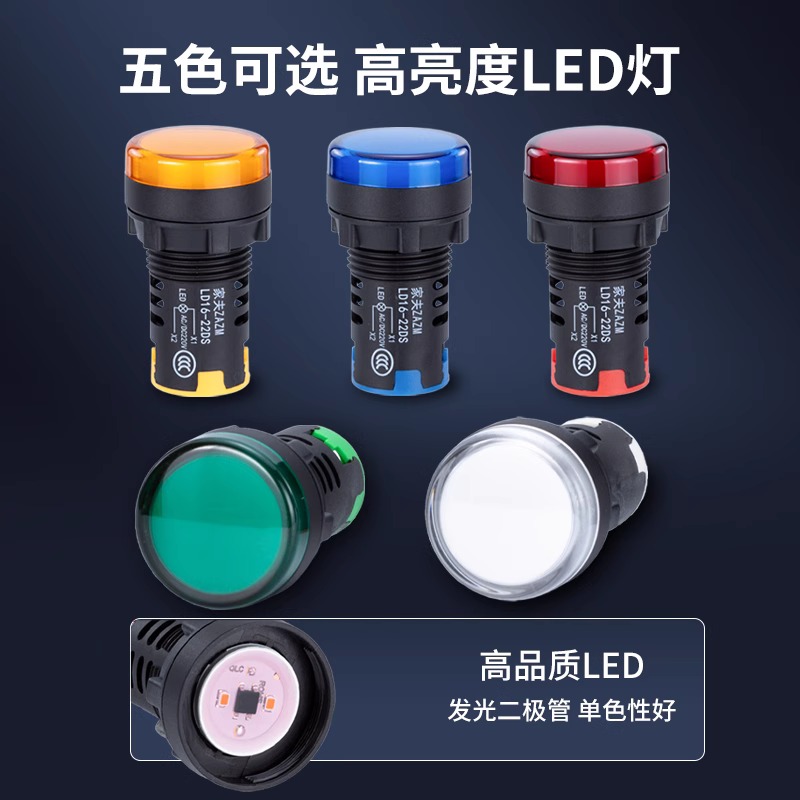 LED电源指示灯24V220V交直流通用AD16信号灯AC/DC380V抗70V干扰