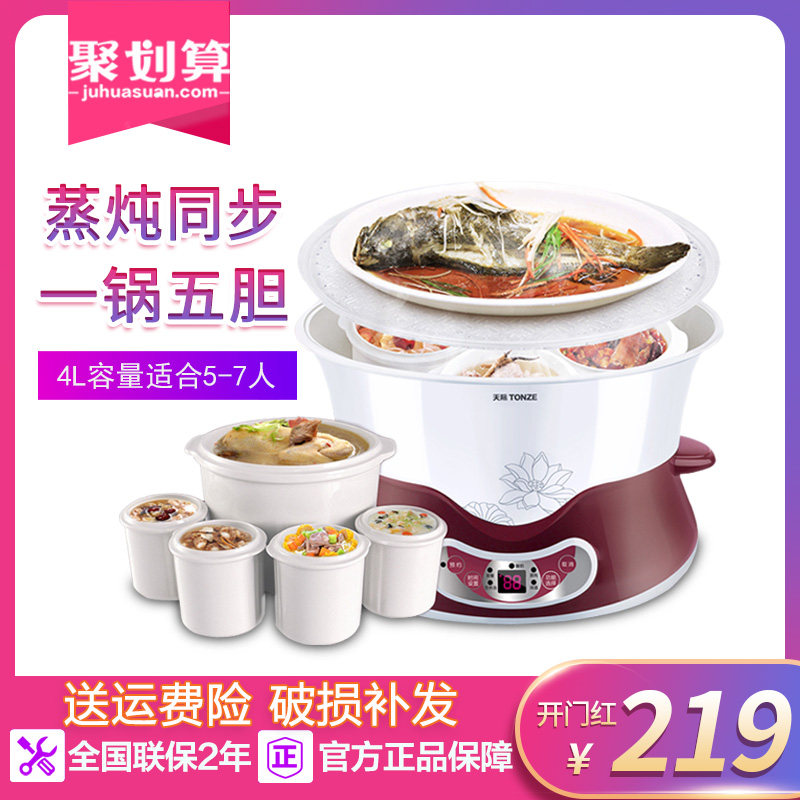 精选天际隔水炖锅白瓷电炖盅全自动煮粥煲汤锅一锅五胆4L大容量5