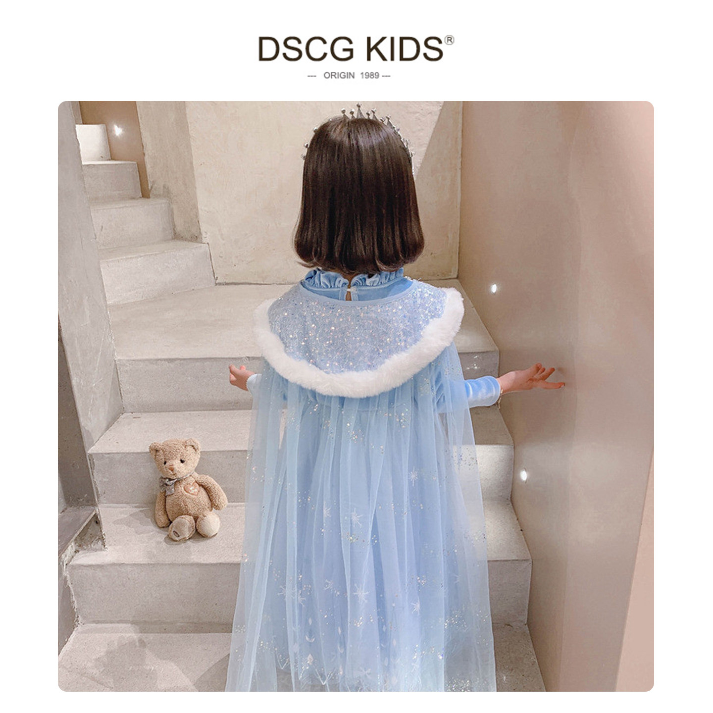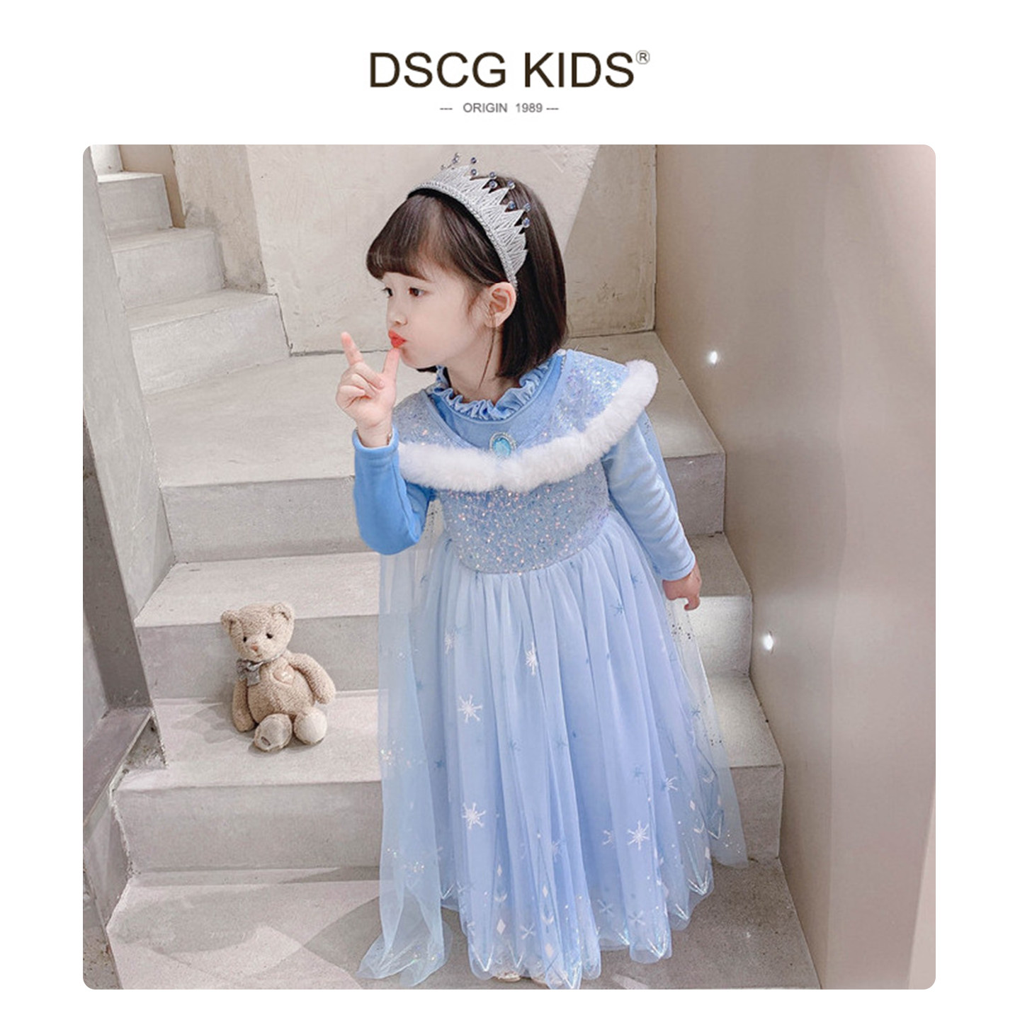 DSCG女童艾莎公主裙秋冬原版加绒迪士尼儿童女孩爱莎生日礼服裙子