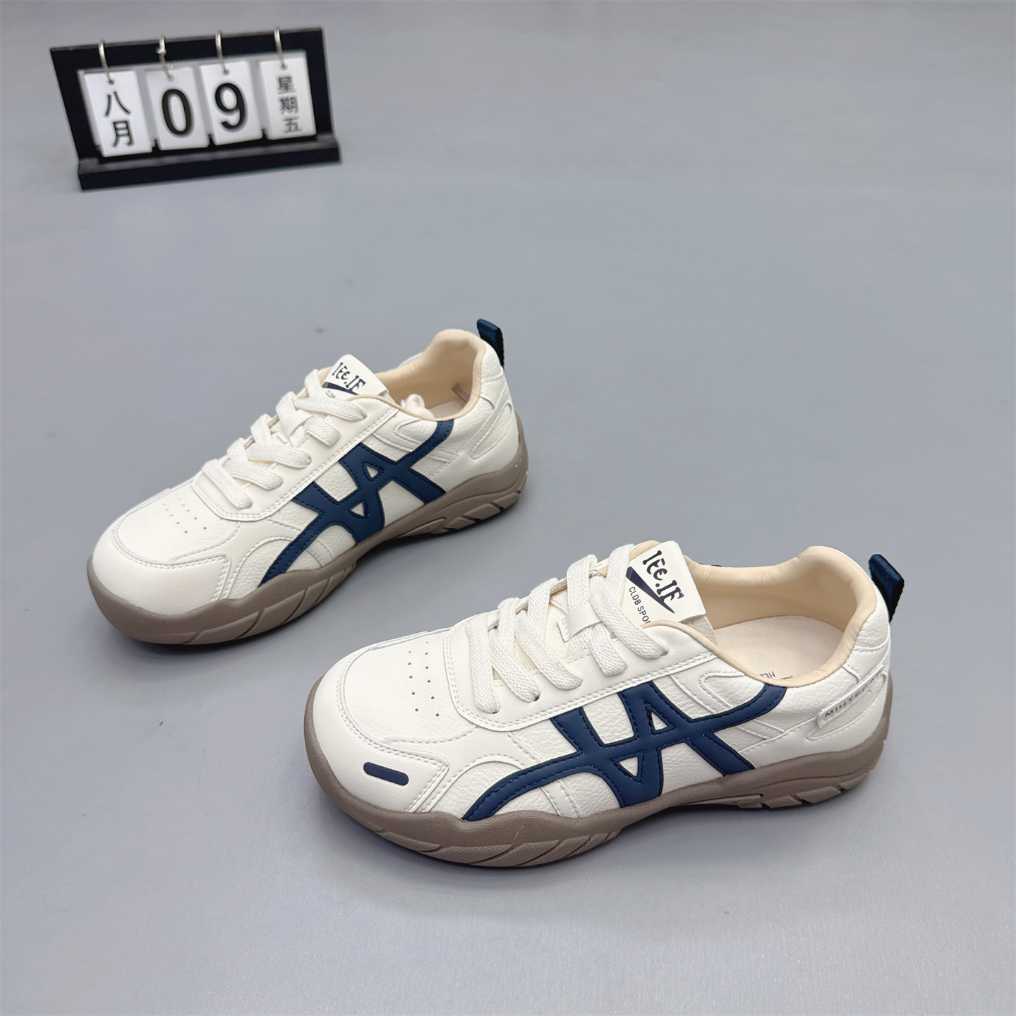 真皮女鞋2025秋季新款厚底拼色小白鞋百搭阿甘鞋拼色德训鞋休闲鞋
