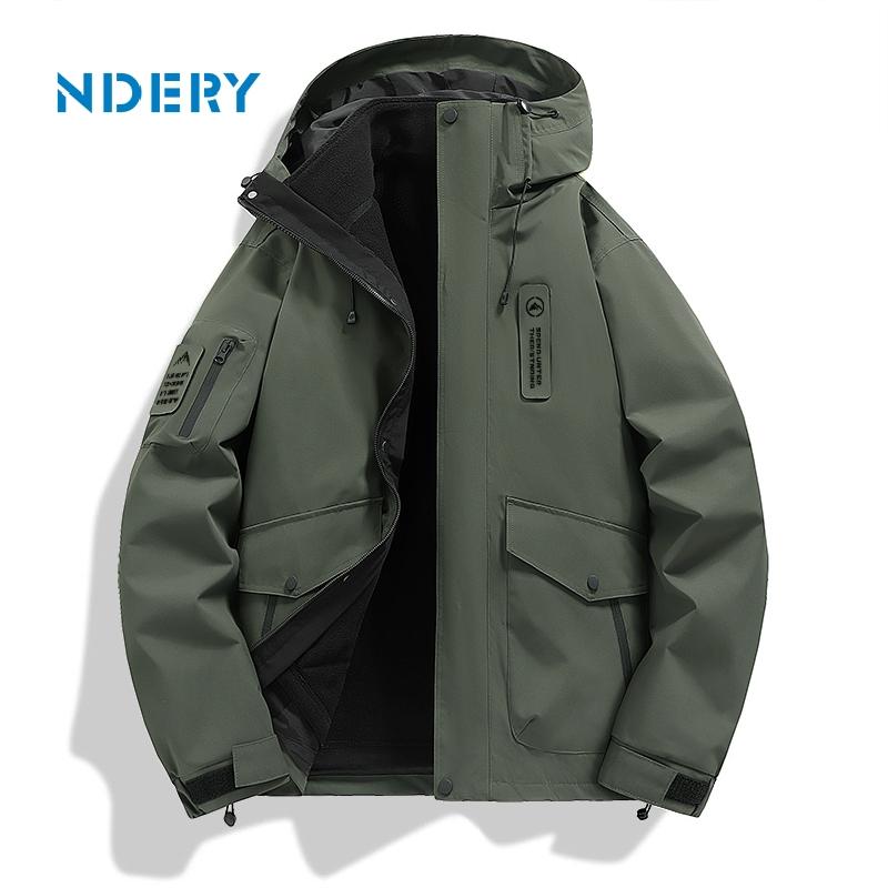 NDERY秋冬季三合一户外冲锋衣防风防泼水男士连帽外套工装夹克男
