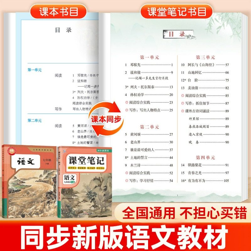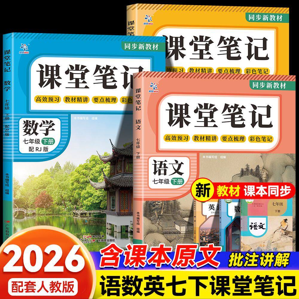 七年级下册课堂笔记2026春新版语文数学英语人教版同步预习教辅资料初一寒假作业教材初中生随堂中学教材全解解读语数英历史课本