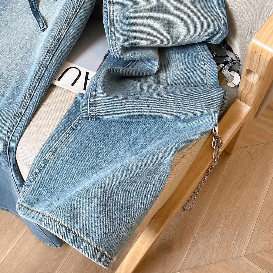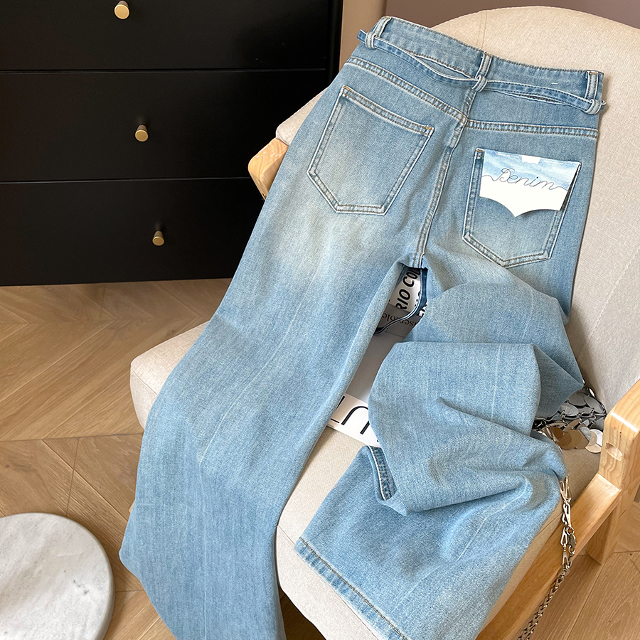 小C家 浅蓝色喇叭牛仔裤女2025春季新款系带高腰显瘦设计感直筒裤