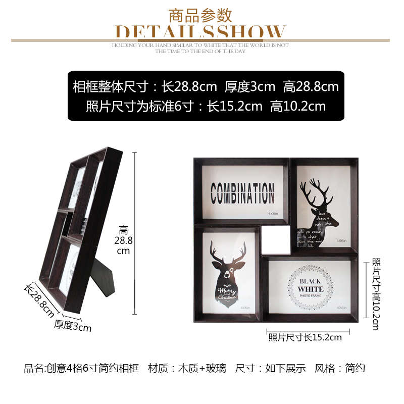 创意相框4宫格框6寸摆台挂墙双用组合相框接拼S连体照片墙像框相