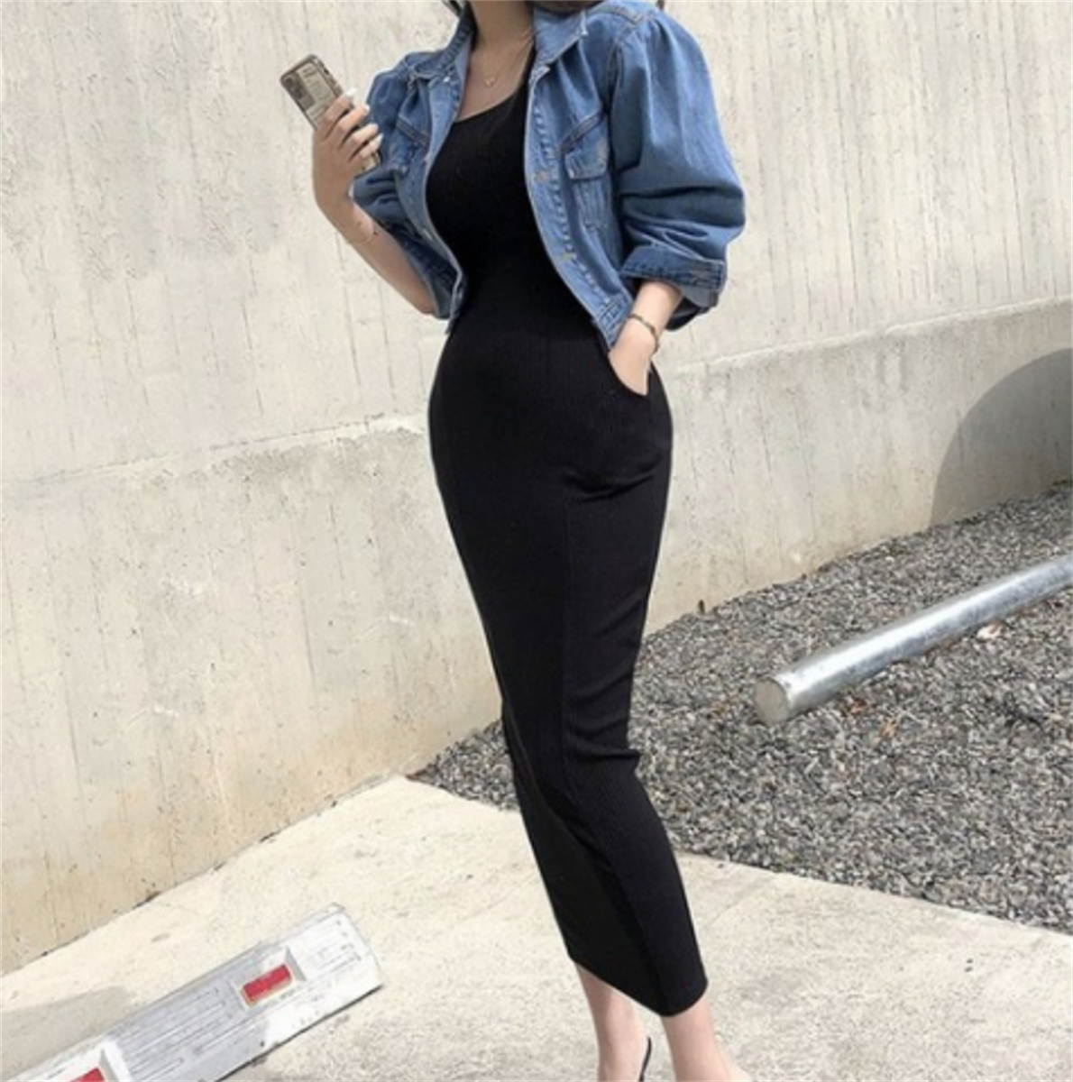 韩国法式方领气质修身显瘦中长款连衣裙女特价夏季T恤长裙子