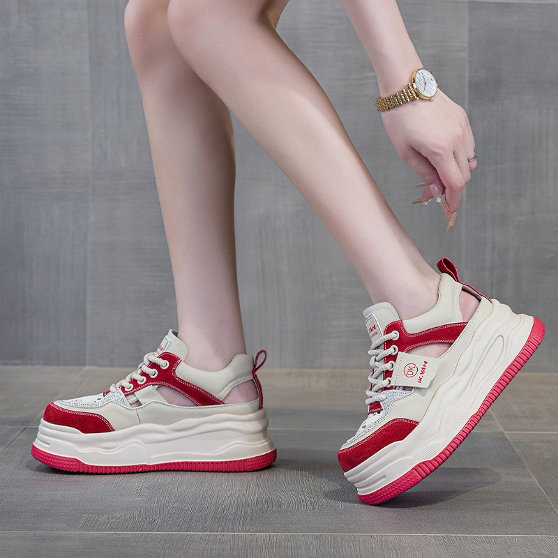 凉鞋女包头内增高2025夏季新款超火透气网面镂空休闲厚底小白板鞋
