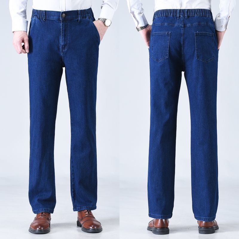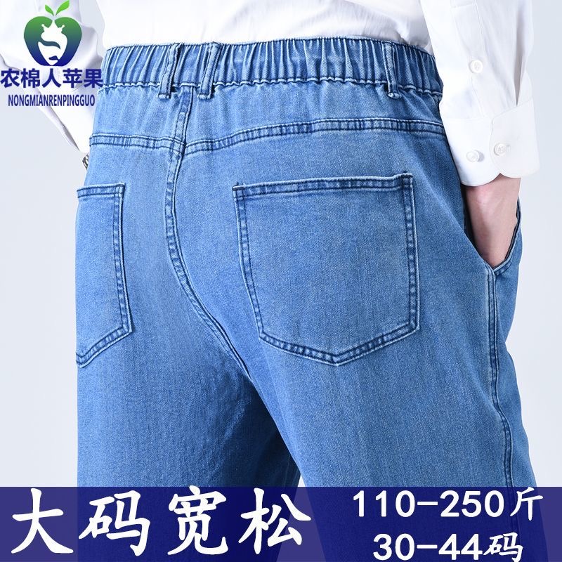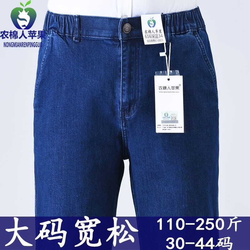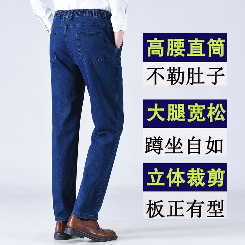 春秋季松紧腰苹果大码牛仔裤男士中年人爸爸装宽松高腰阔腿直筒裤