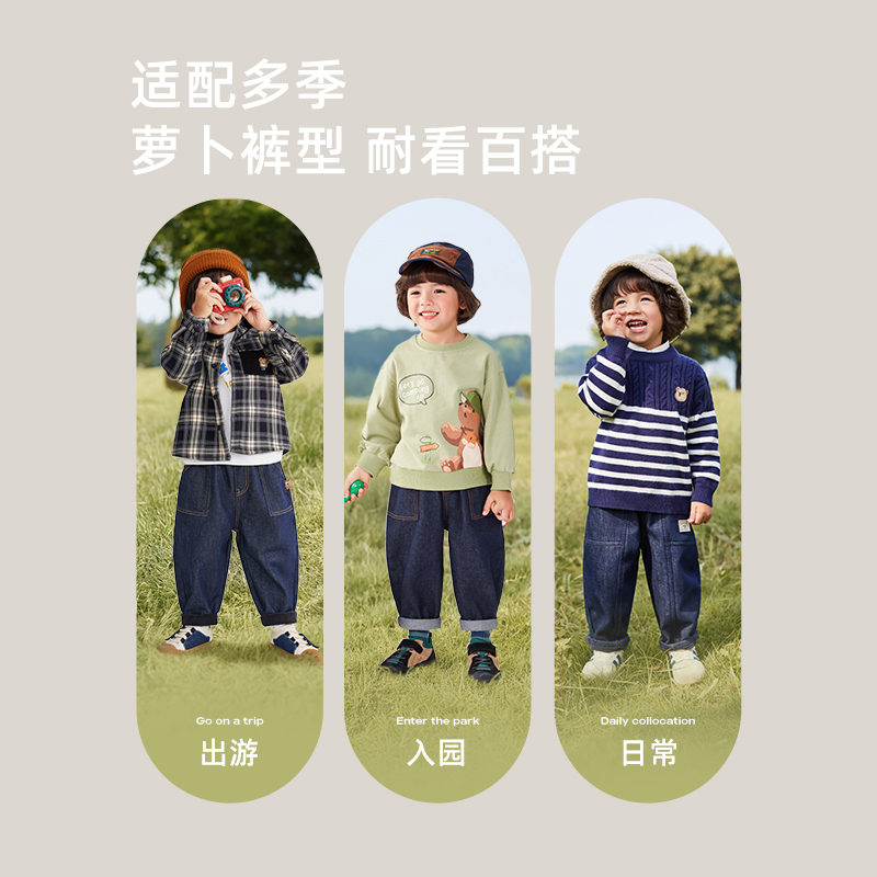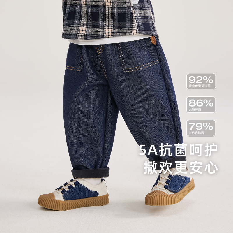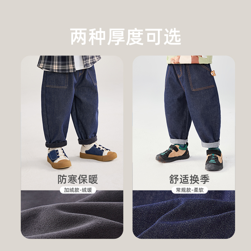 [防褪色抗菌锁温]男童牛仔裤秋冬加绒小男孩冬装长裤儿童薄绒裤子