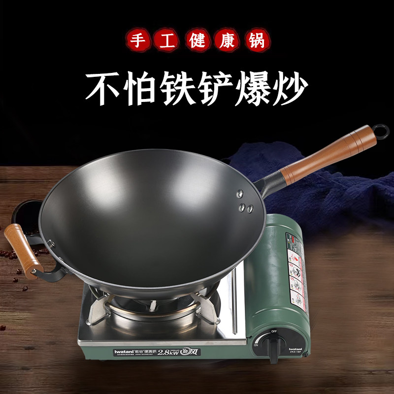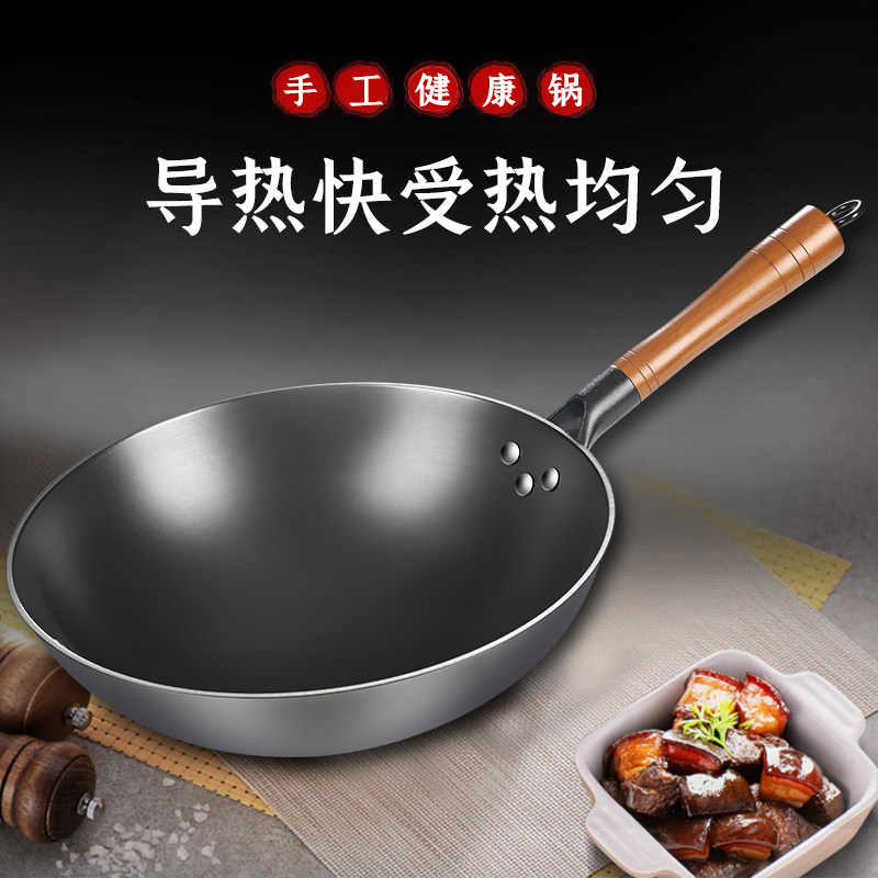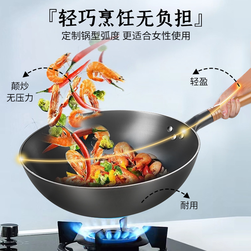 铁人窒化超轻铁锅炒锅生铁铸铁锅家用炒菜锅无涂层陆川铁锅免开锅