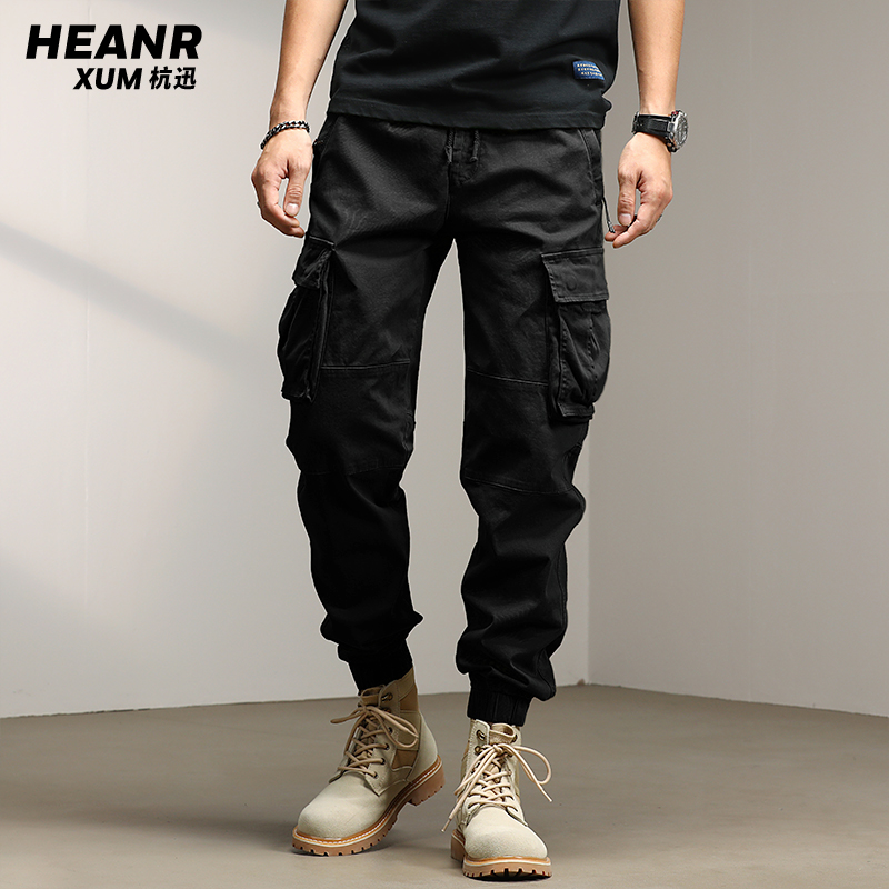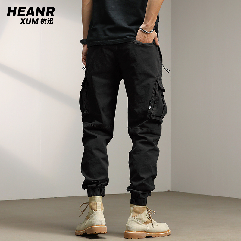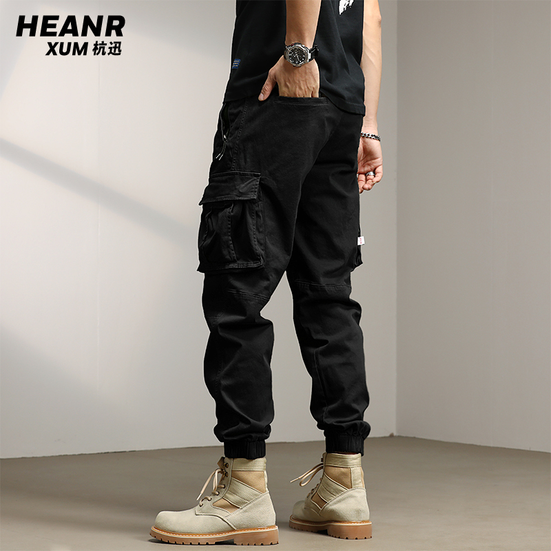 秋冬季拉链黑色休闲裤子宽松束脚工装裤男高级感美式复古男士长裤